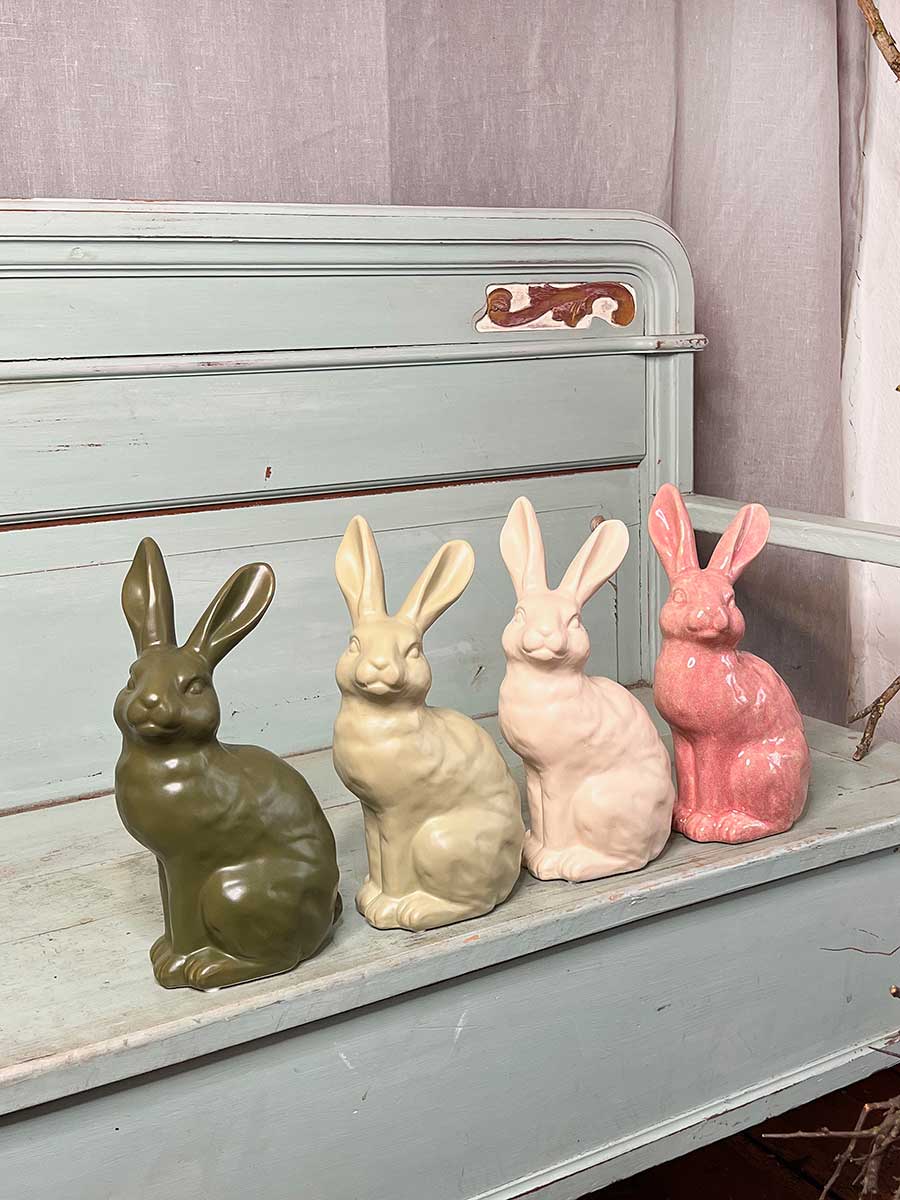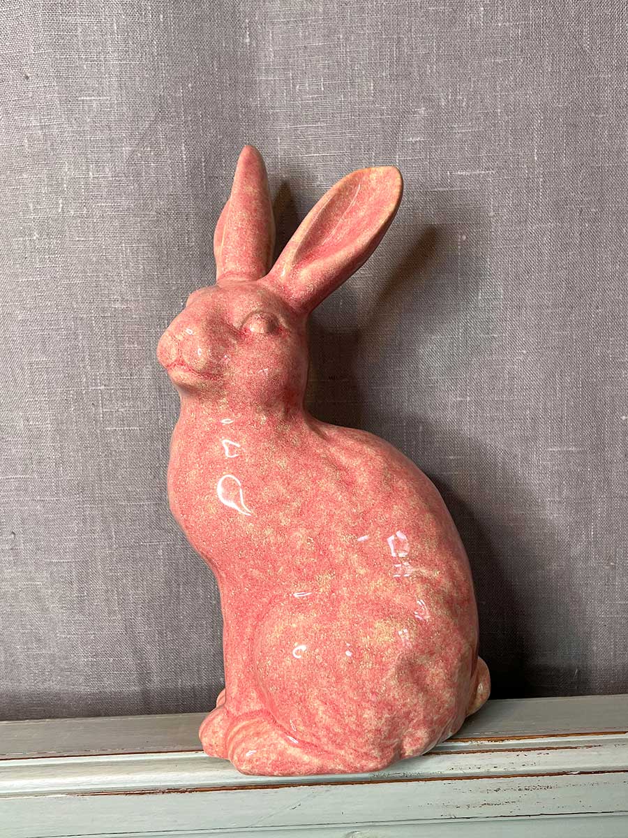 Rosa lackierter Keramik Osterhase "Colin" in sitzender Haltung von Vosteen. Hübsche Landhausdekoration, innen hohl.