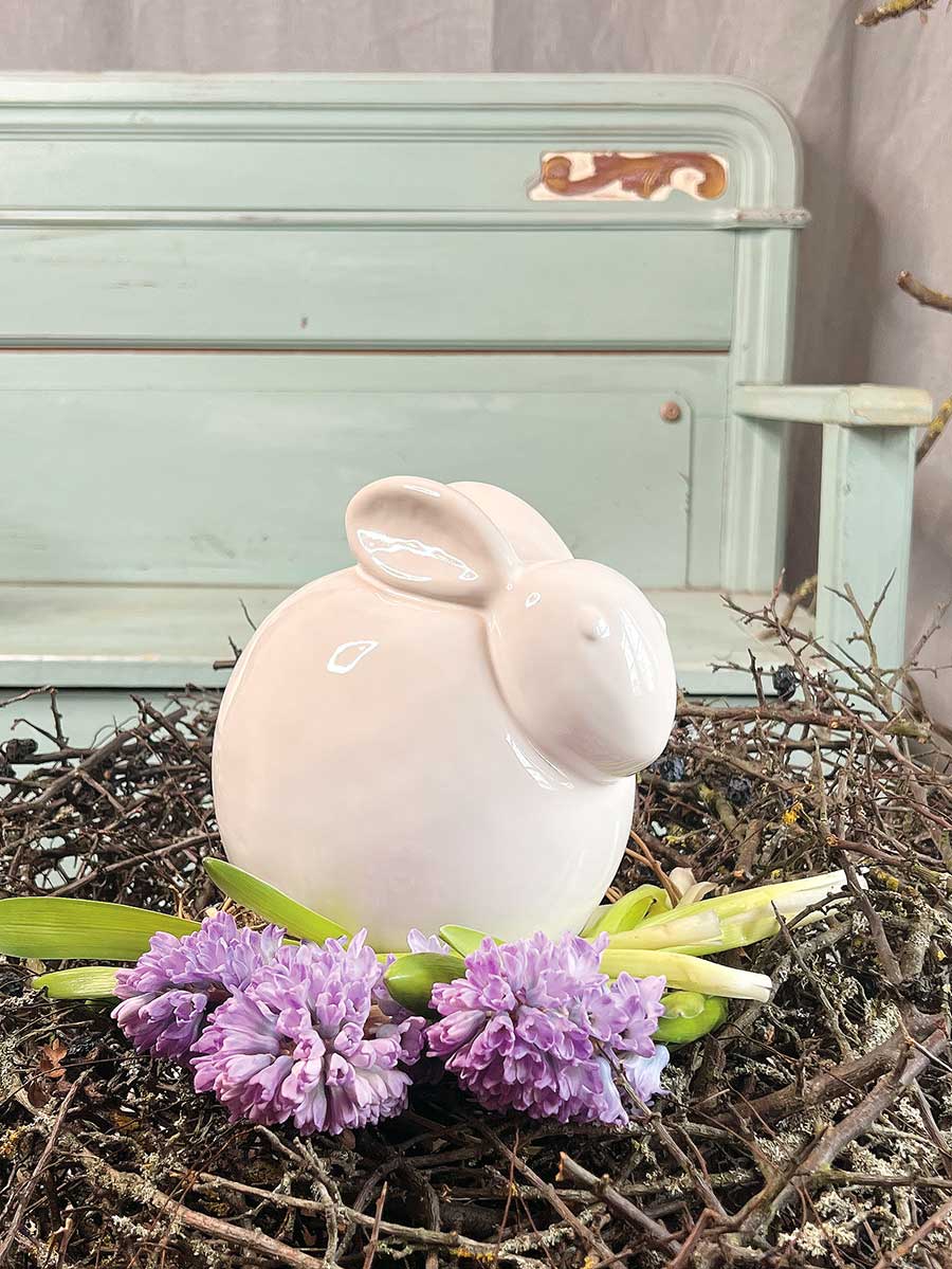 Keramik Osterhase "Levi" weiß in geduckter Haltung von Vosteen. Hübsche Landhausdekoration, innen hohl.
