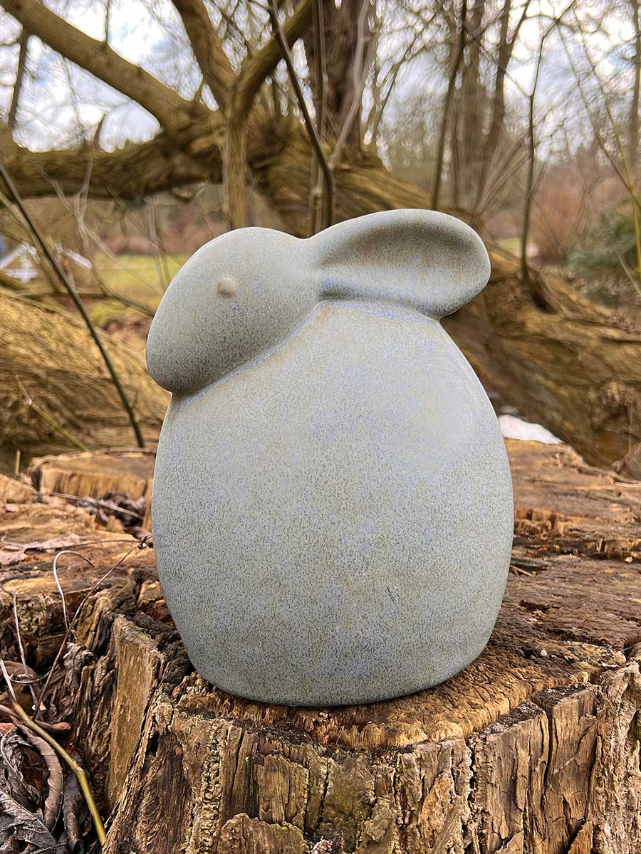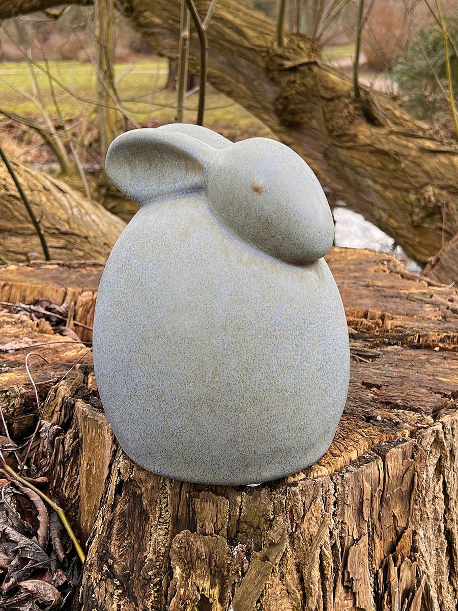 Salbeigrüner Keramik Osterhase "Isen" in geduckter Haltung von Vosteen. Hübsche Landhausdekoration, innen hohl.