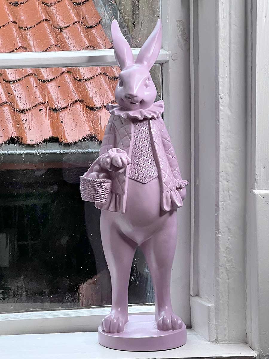 Lieferumfang: 1 Osterhase Häsin stehend mit Körbchen flieder Polyresin H51