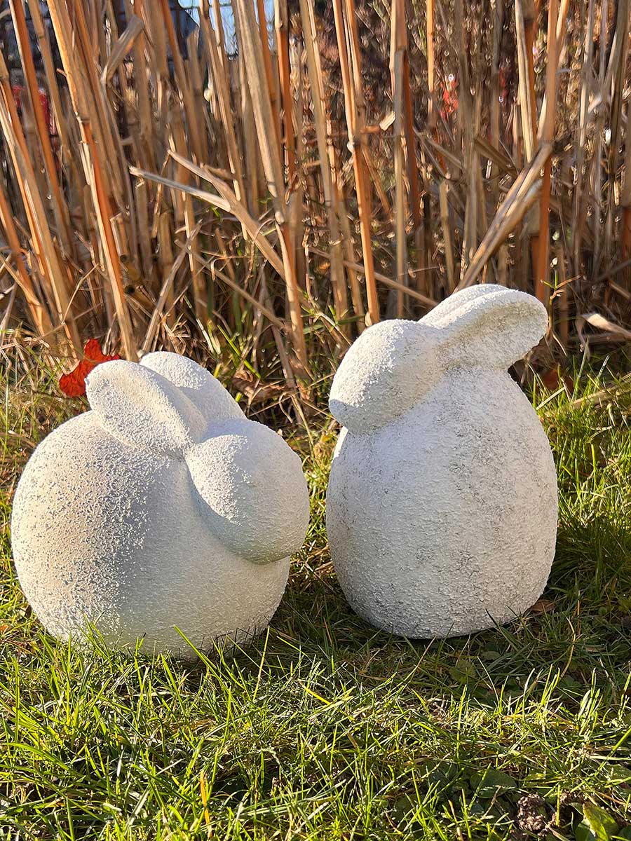 Lieferumfang: 1 Rustikaler Keramik Osterhase geduckt Rauhputzoptik lichtgrau H18