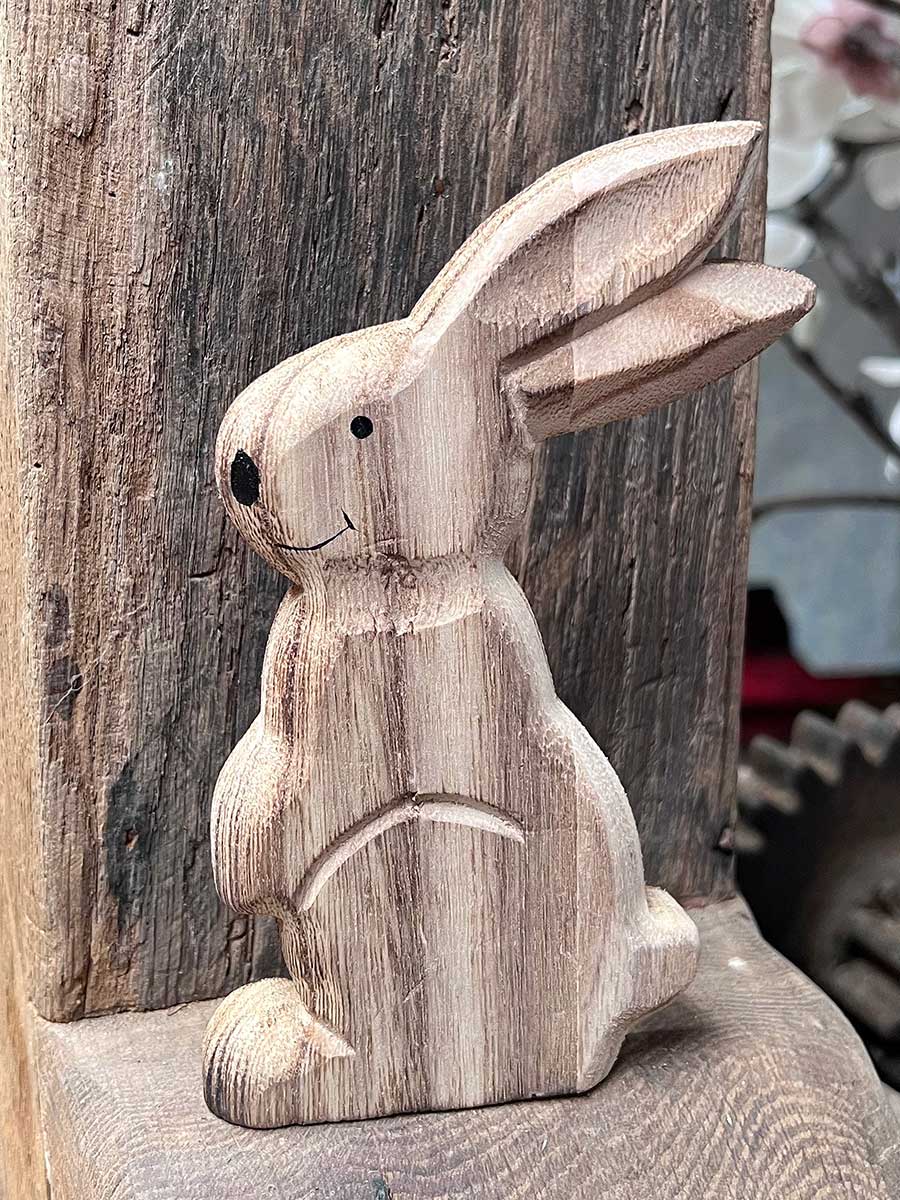 Shabby Vintage Holzhase stehend in Schnitzoptik, tolle Osterdekoration. Besonders hübsch wirkt der Hase in Kombination mit den anderen Farben.