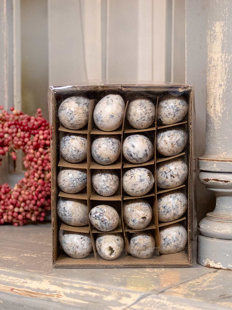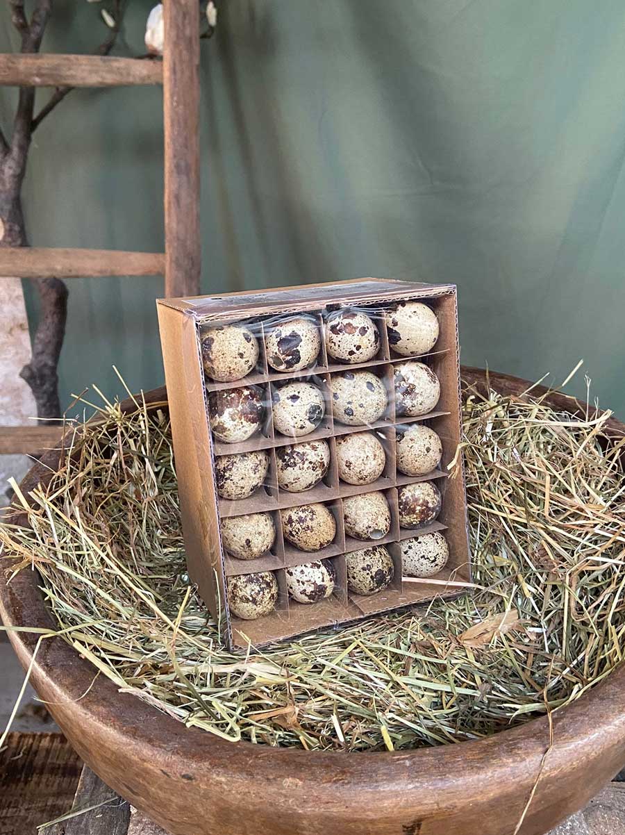 Die natur-farbenen Wachteleier sind im Frühjahr ein unverzichtbares Dekorationselement. Sie bezaubern besonders in floralen Werkstücken oder einfach mit ein paar Federn in Glasgefäßen.