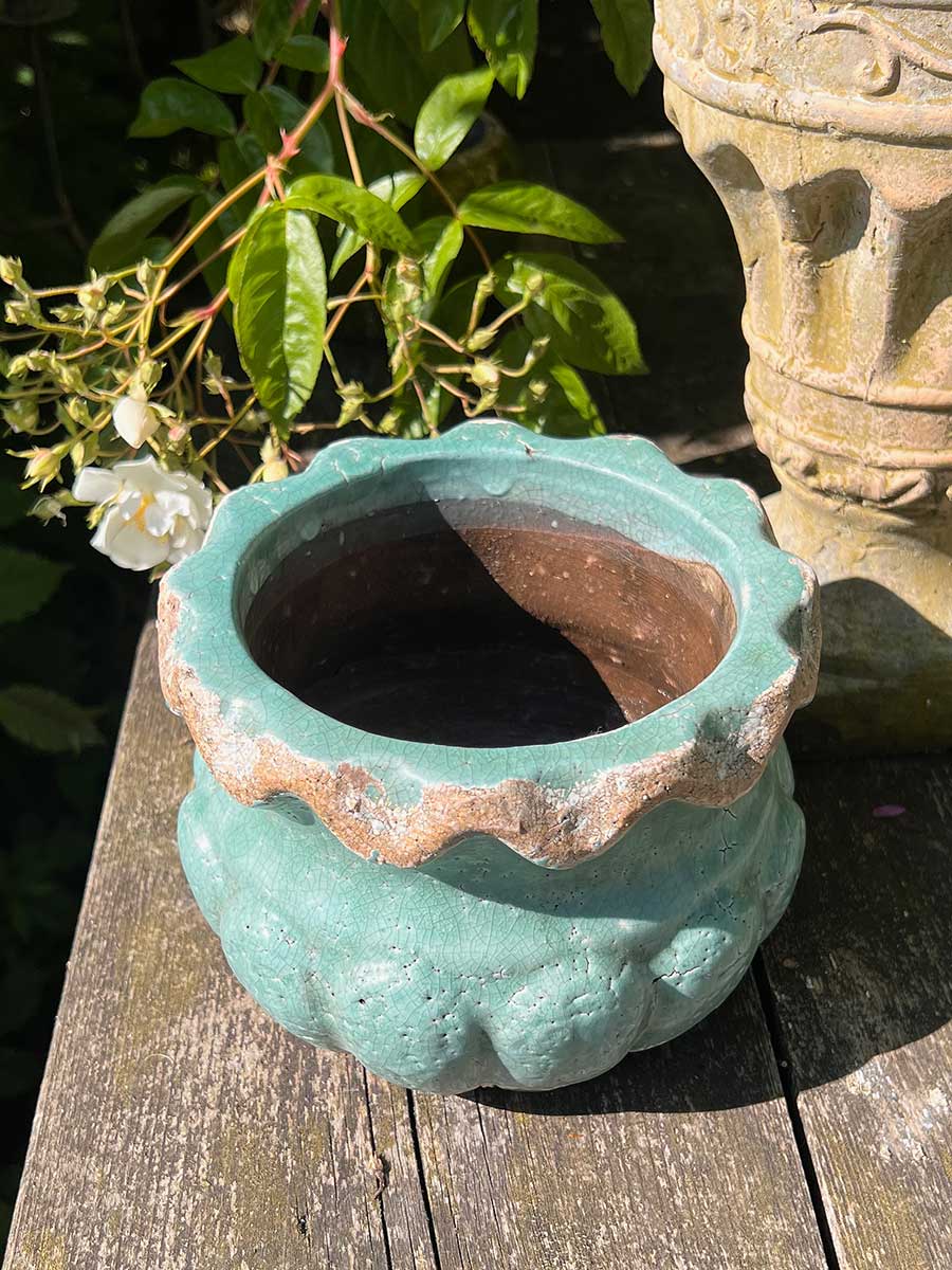 Antik Vintage Shabby Blumentopf Keramik türkis H13 D17