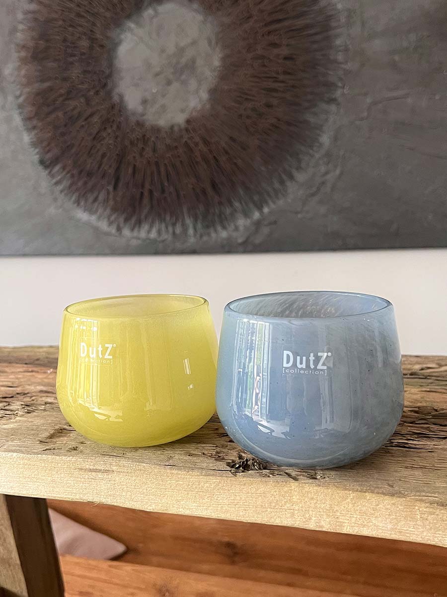 DutZ Collection Glas Pot Übertopf Vase Windlicht bauchig H11 D13 jeansblau