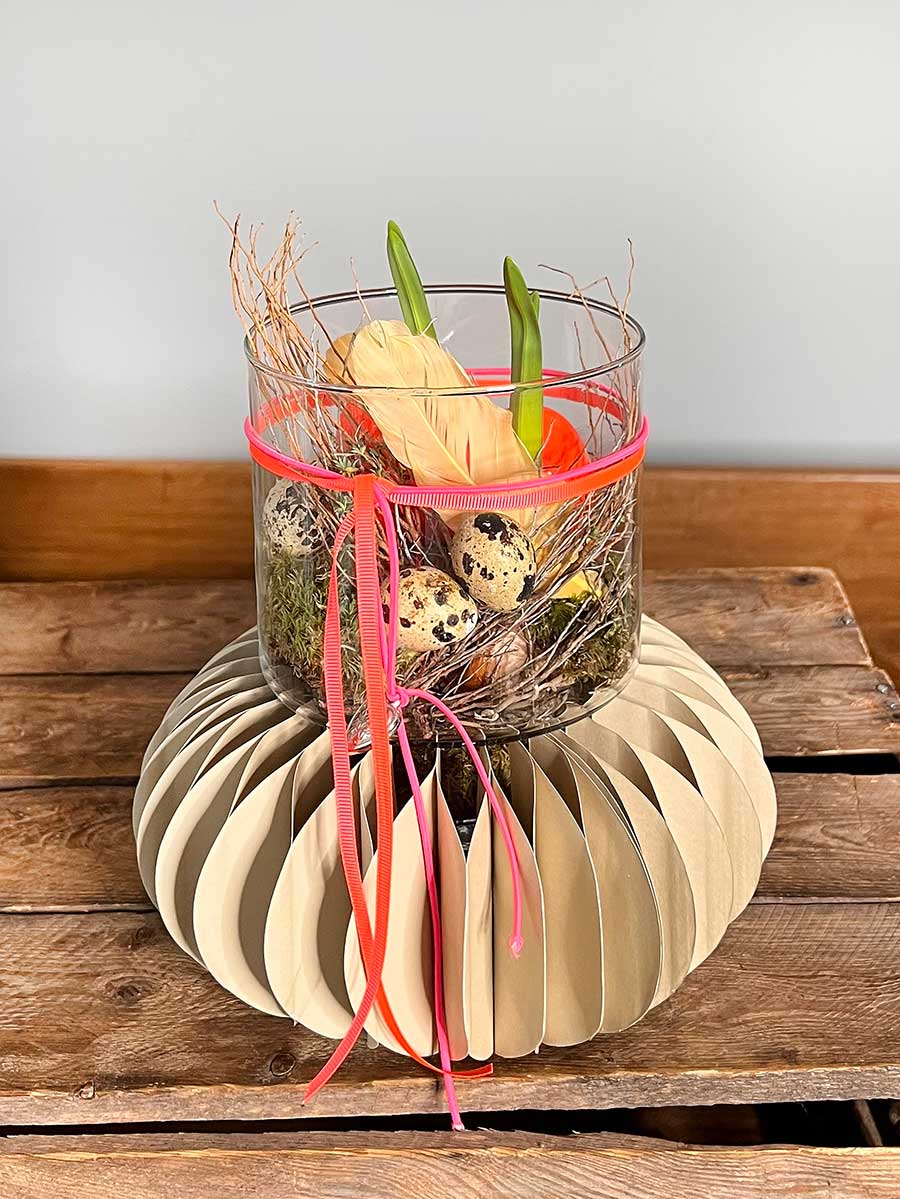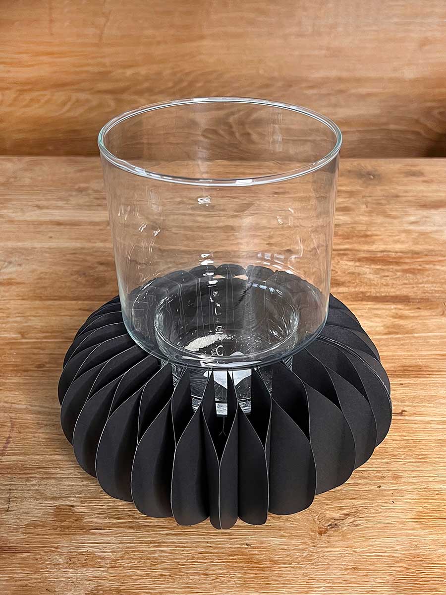 Glaseinsatz klar für den Papierfaltkranz Dacia, passend für S und M. Die Glasvase kann auch solo und als Windlicht verwendet werden.
