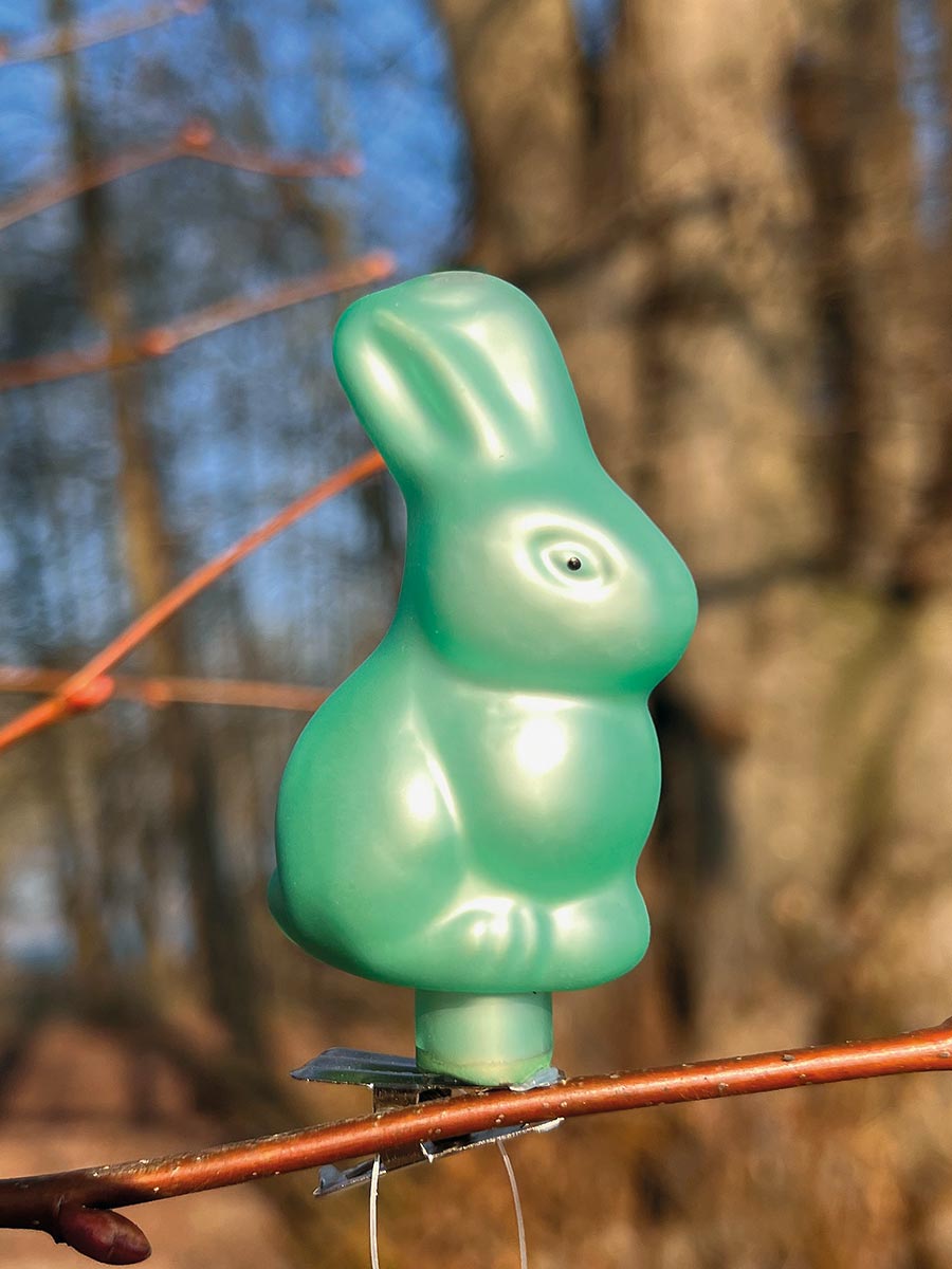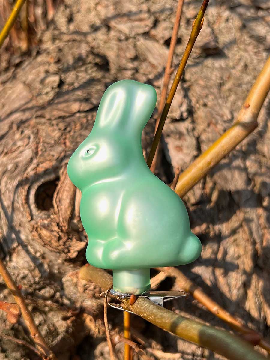 Süßer Osterhasen-Clip in mint aus Glas, tolles Dekorationselement für Osterzweige