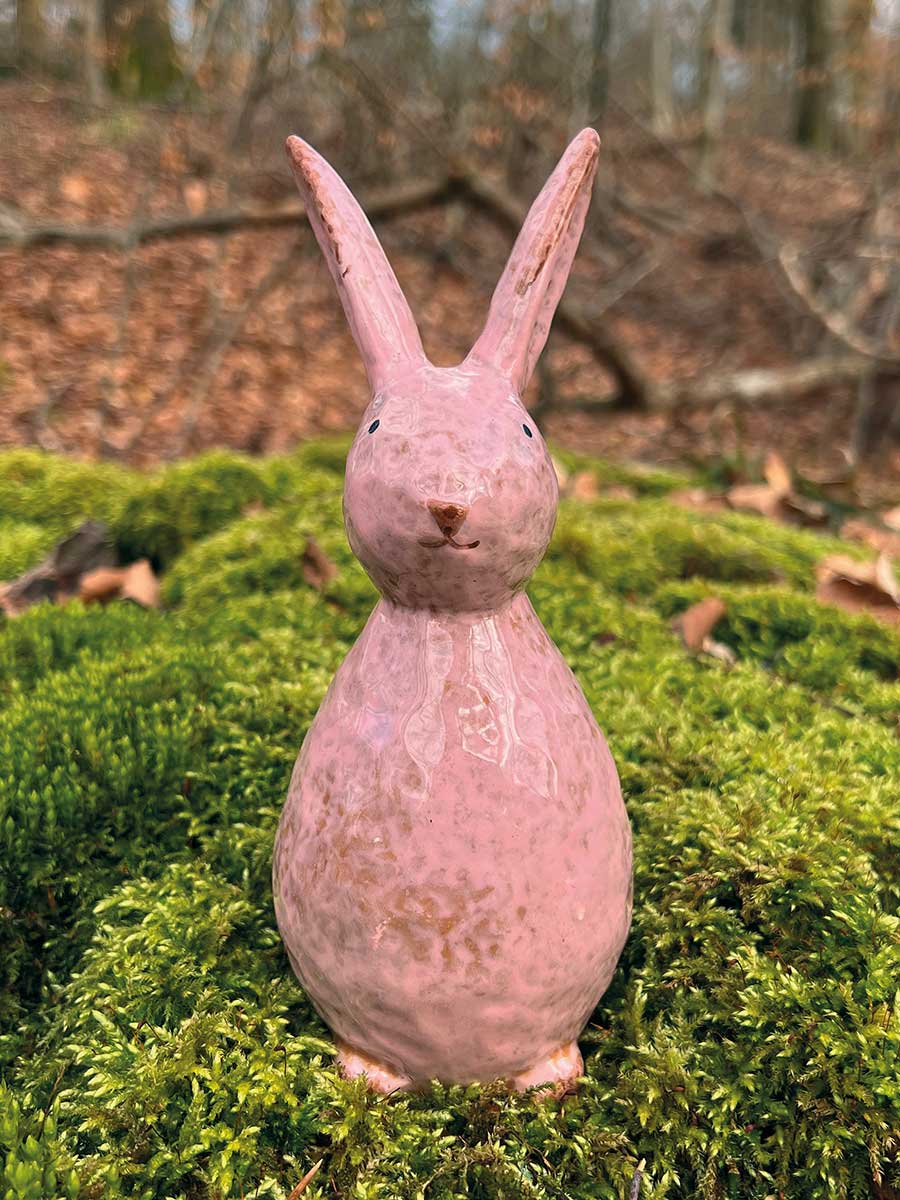 Keramik Osterhase Benja in rosa von Vosteen, tolle glasierte Keramikfigur im Vintagelook, innen hohl. Besonders hübsch wirkt Benja in Kombination mit den anderen Farben und der größeren Variante