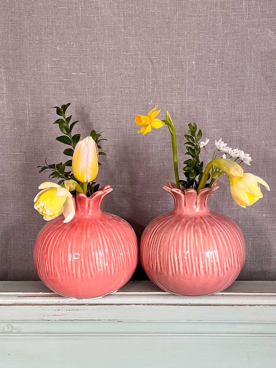 Außergewöhnliche Keramikvase Ina in coral. Die Vase erinnert an einen Granatapfel und eignet sich prima für 3-5 kurzstielige Blumen