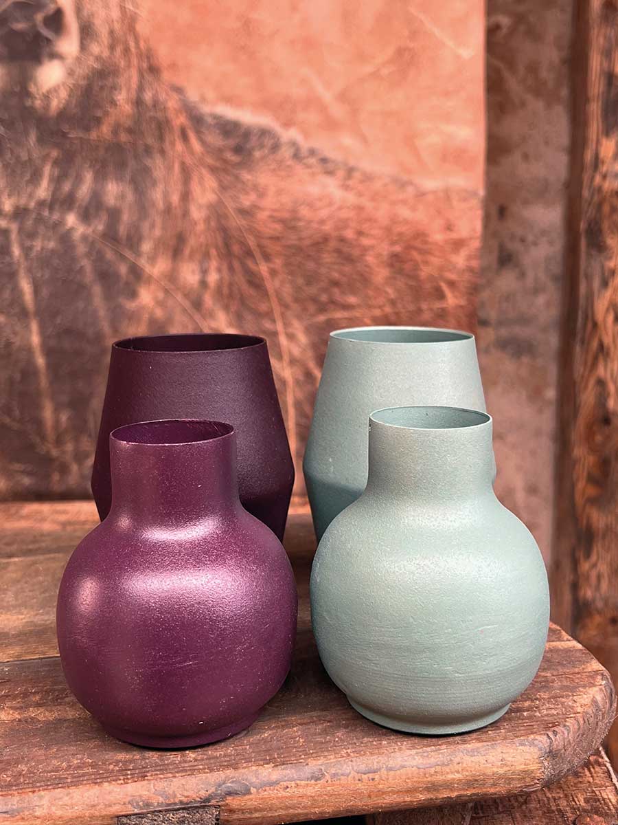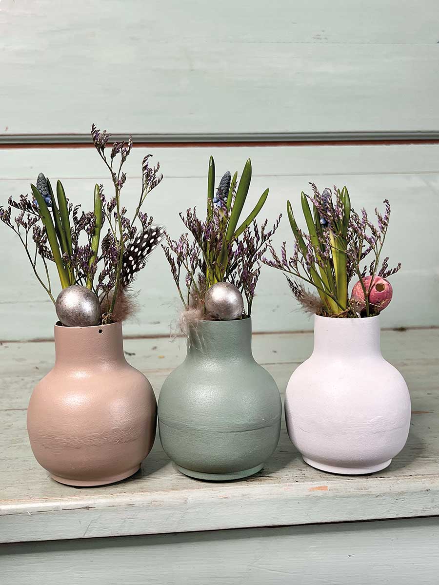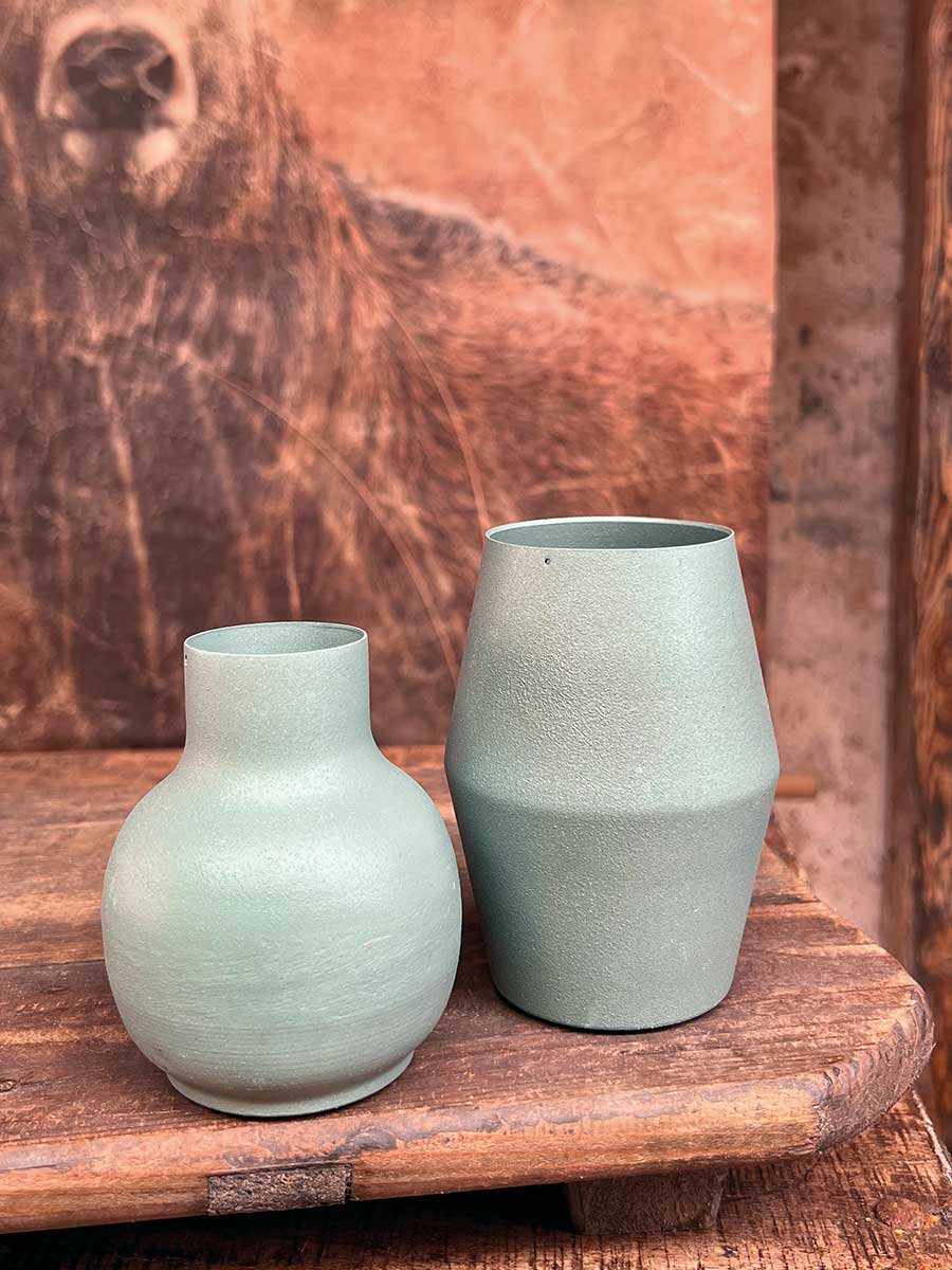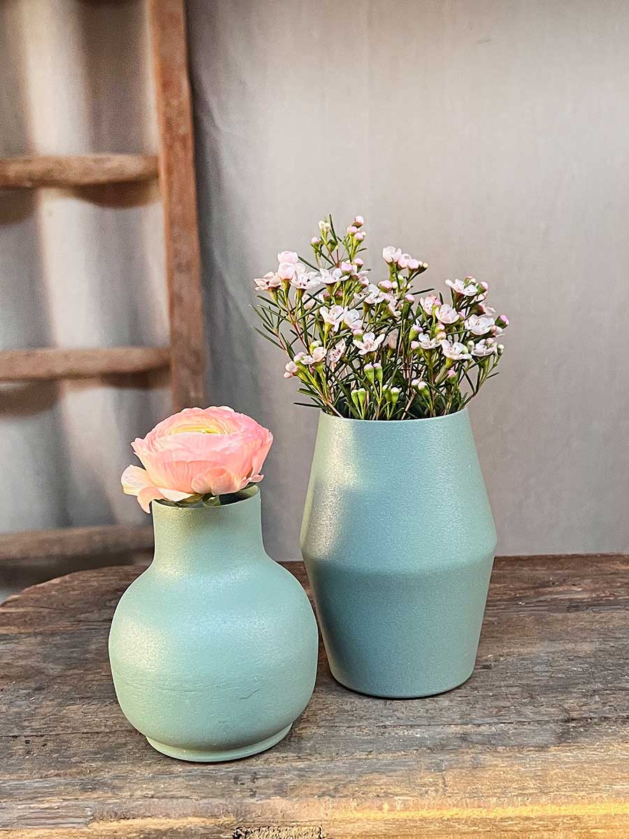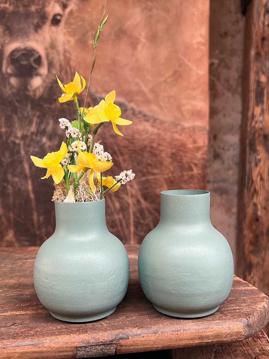 Bauchige grüne Metallvase "Carol" - wunderbare Basis für individuelle floristische Dekorationen.