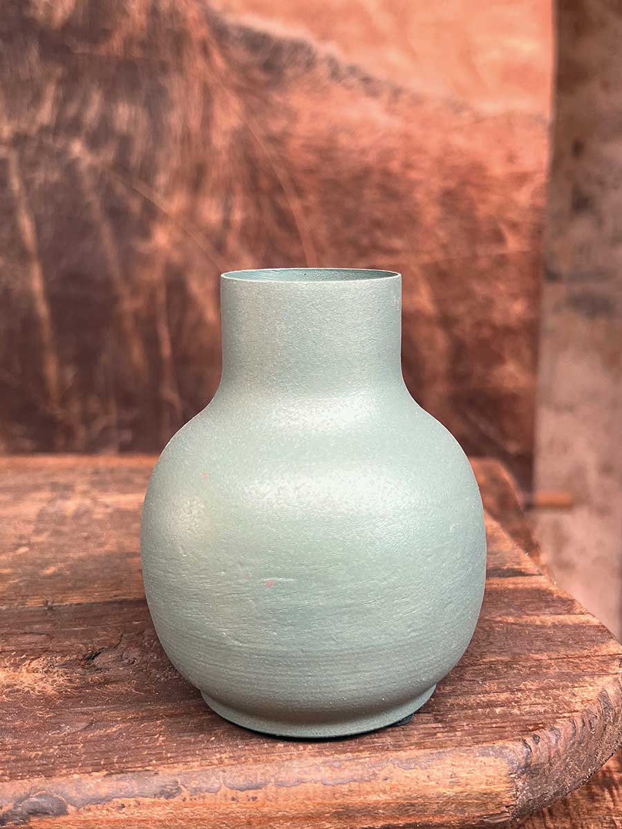 Metallvase Carol grün bauchig H10 D8
