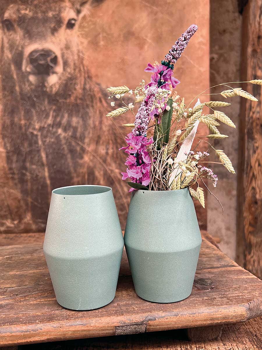 Lieferumfang: 1 Metallvase Carol grün H12 D9