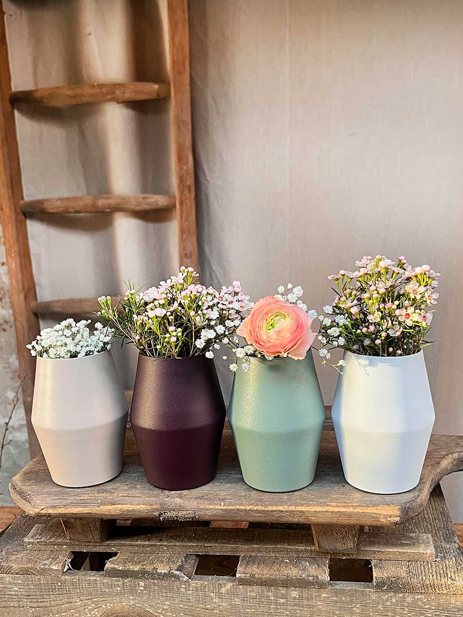 Schlichte pinke Metallvase "Carol" - wunderbare Basis für individuelle floristische Dekorationen.