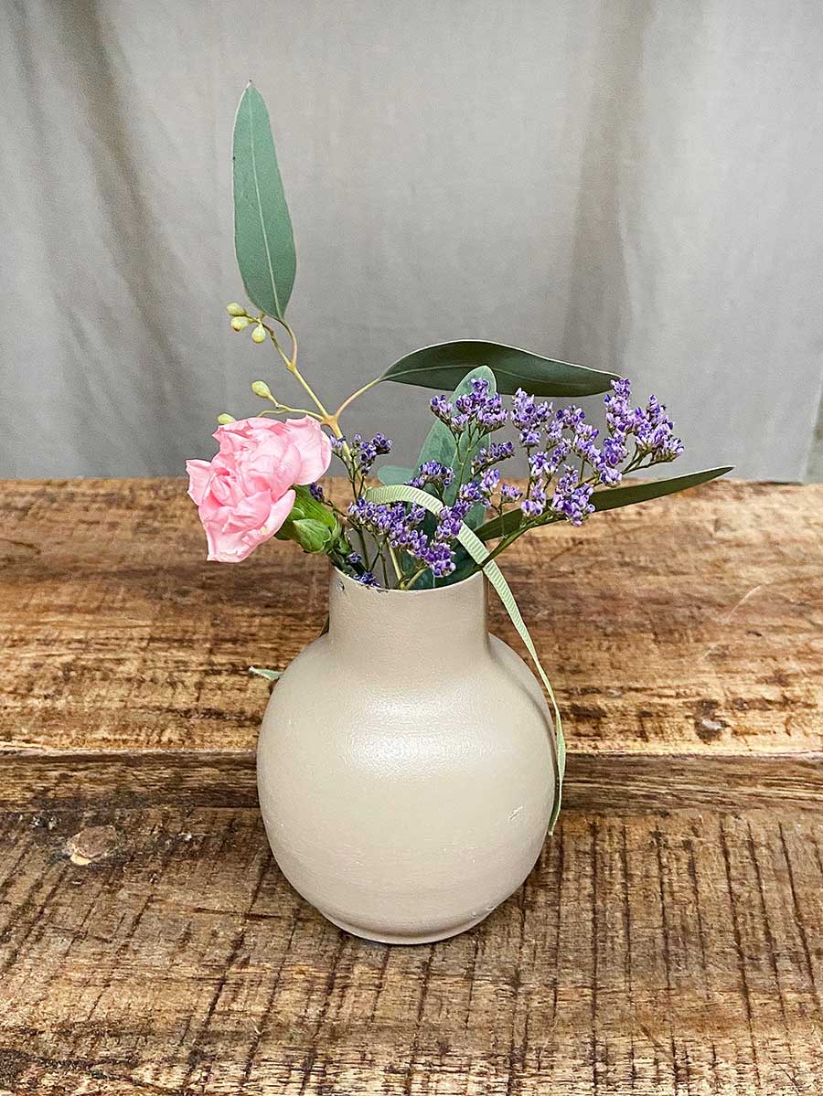Bauchige hellbraune Metallvase "Carol" - wunderbare Basis für individuelle floristische Dekorationen.