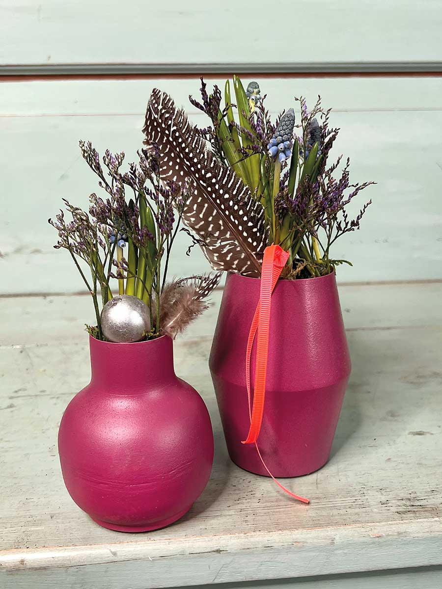 Schlichte pinke Metallvase "Carol" - wunderbare Basis für individuelle floristische Dekorationen.