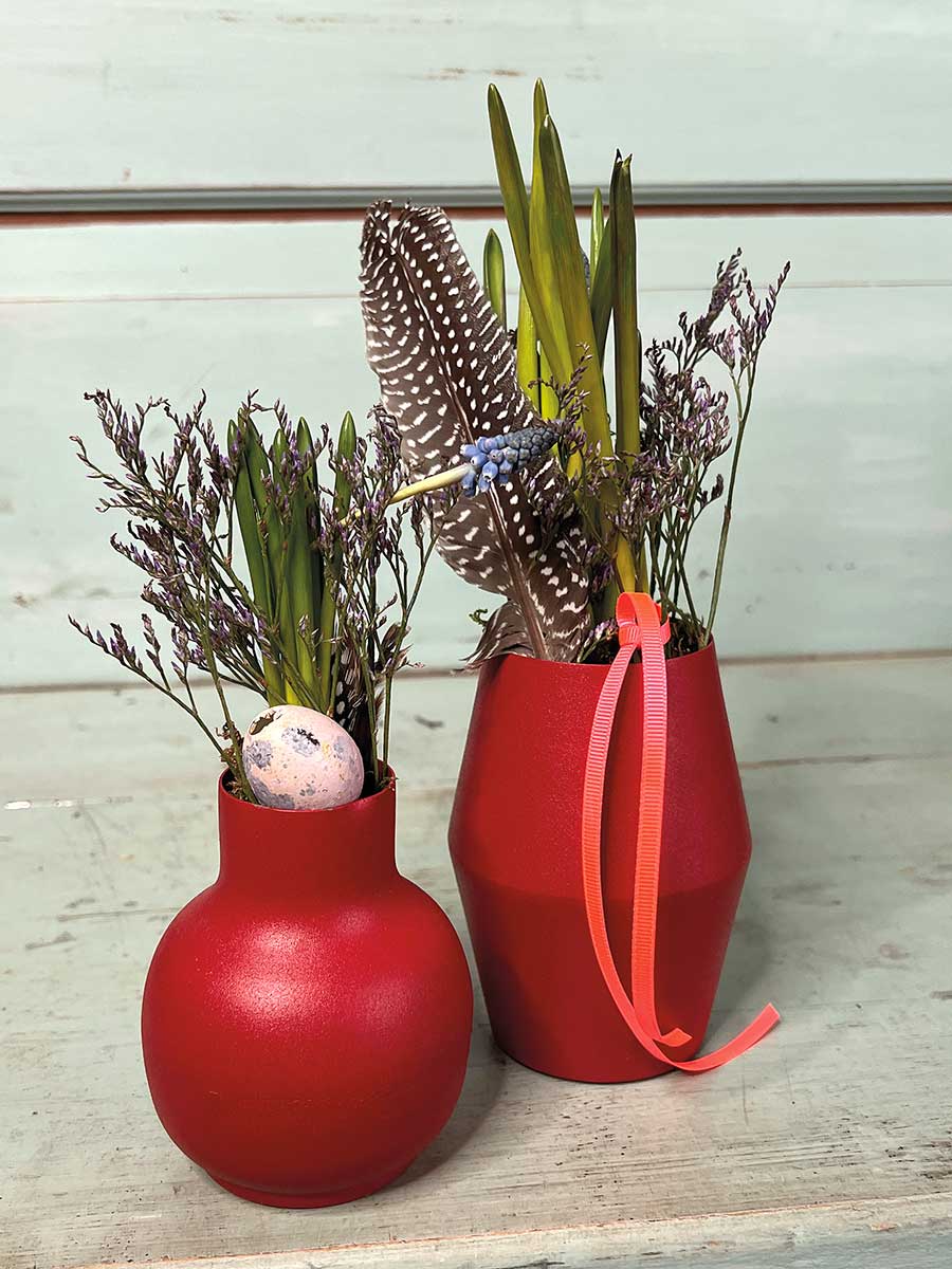 Bauchige rote Metallvase "Carol" - wunderbare Basis für individuelle floristische Dekorationen.
