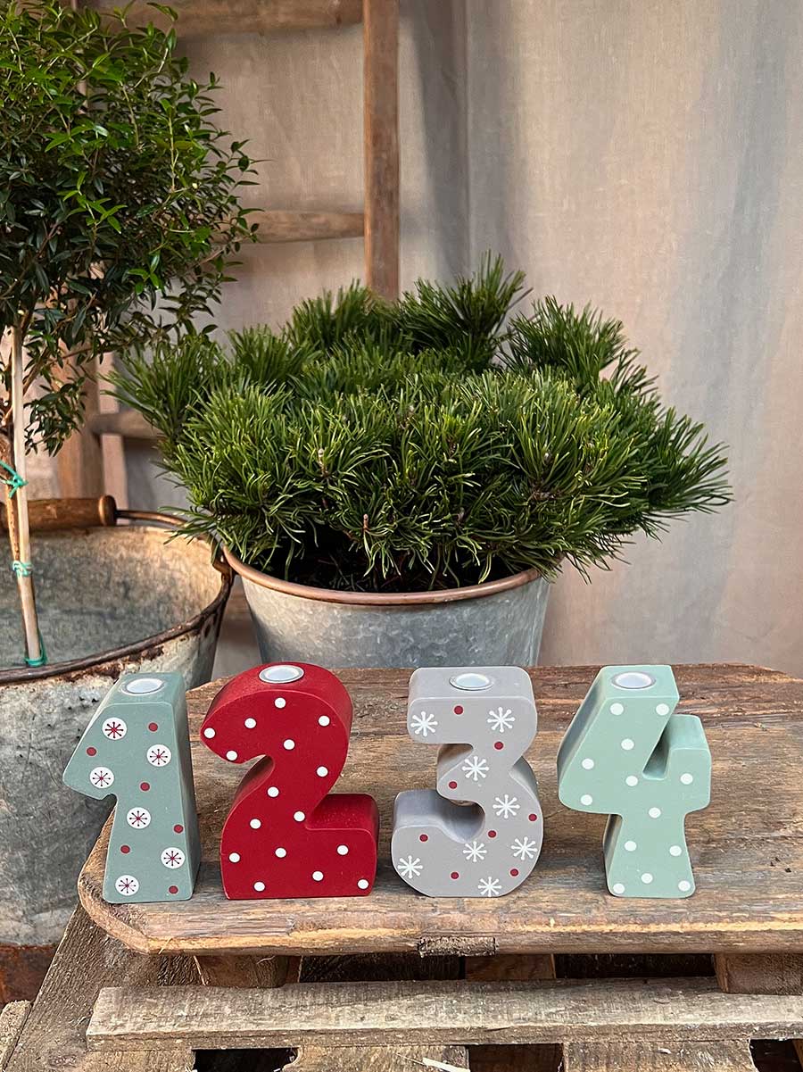 Advent Holzziffern Set 1234 Kerzenhalter bunt Madleys H12
