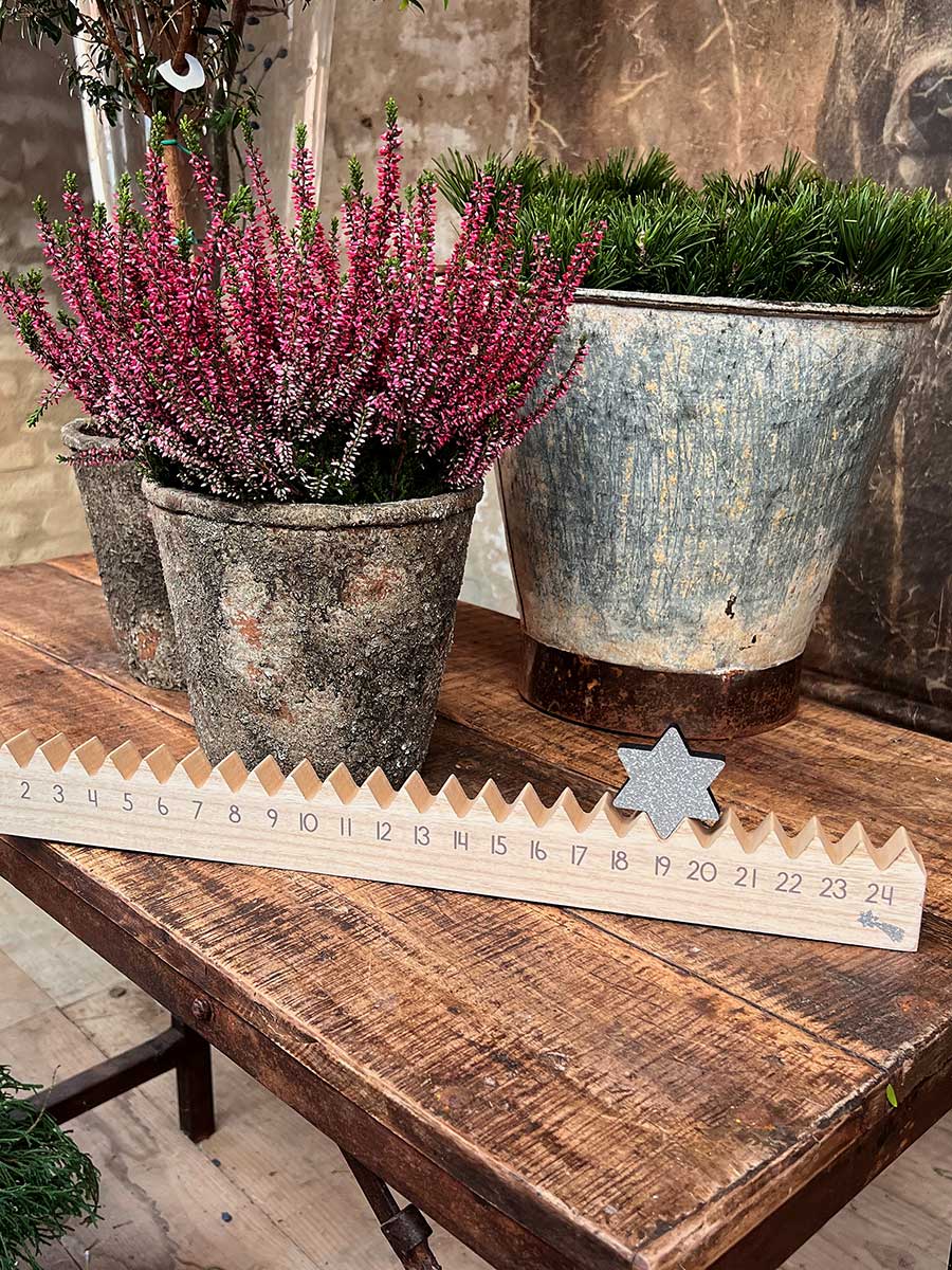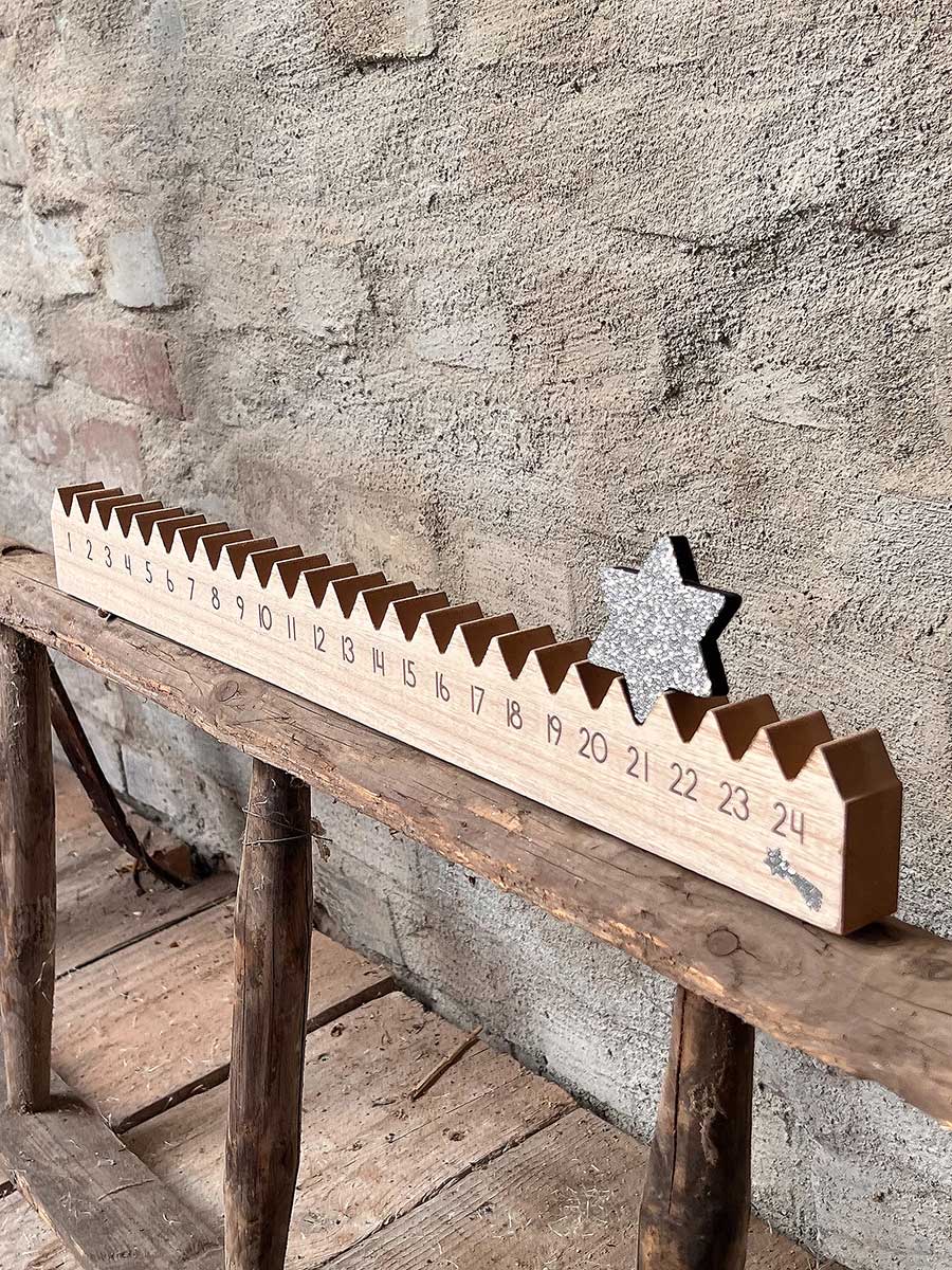 Toller Adventskalender von IB Laursen aus Holz mit über die Tage laufendem silbernen Glitzerstern. Der etwas andere Adventskalender ohne Süßigkeiten um die Zeit bis zum Weihnachtsabend spielend zu erleben. Jeden Tag wird der Stern einen Tag weiter gesetzt.