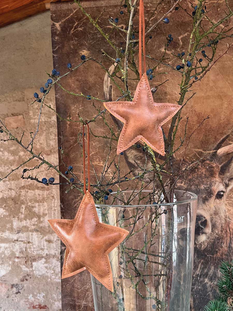 Lederstern hellbraun Stern wattiert zum Aufhängen S