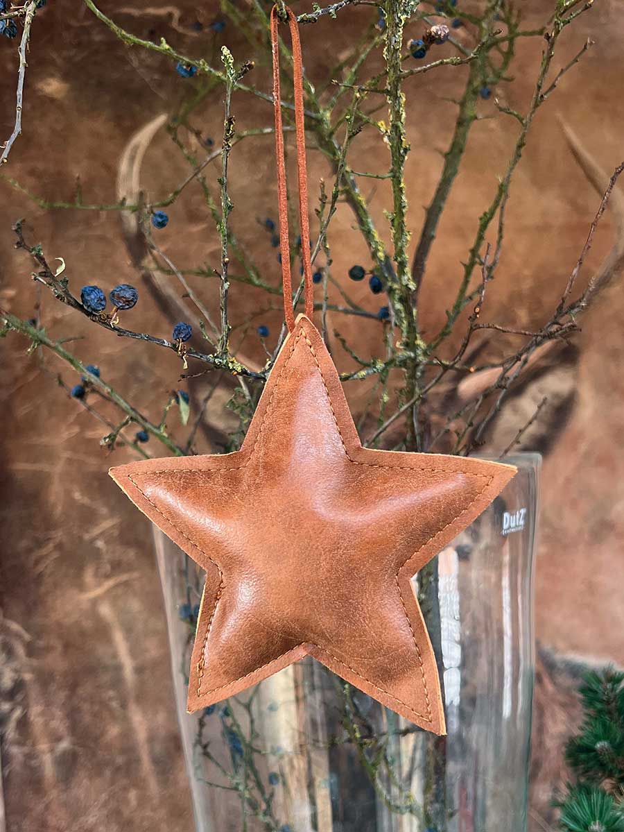 Lederstern hellbraun Stern wattiert zum Aufhängen M