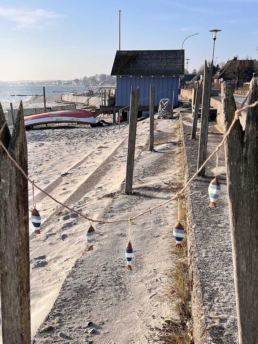 Girlande blau weiß gestreifte Holzfische am Seil L120