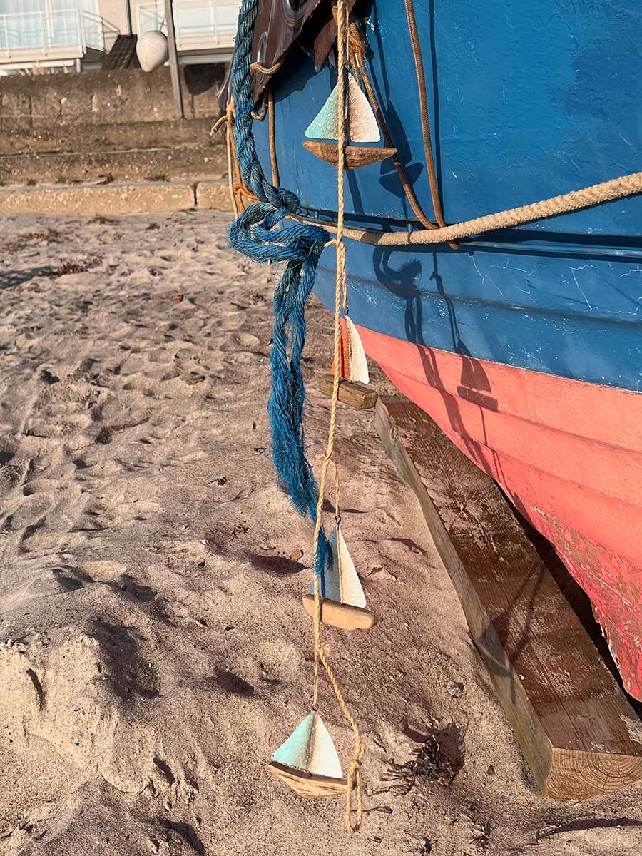 Kleine Segelboote an einer Seil-Girlande mit Aufhängeösen an beiden Enden - stimmungsvolle maritime Dekoration, die in allen Wohnbereichen zum Einsatz kommt, ob Wohnzimmer, Badezimmer, Eingangsbereich oder Wintergarten. Holen Sie sich nordisch maritimes Wohnflair in Ihr Zuhause oder setzen Sie maritime Akzente in der Ferienwohnung.