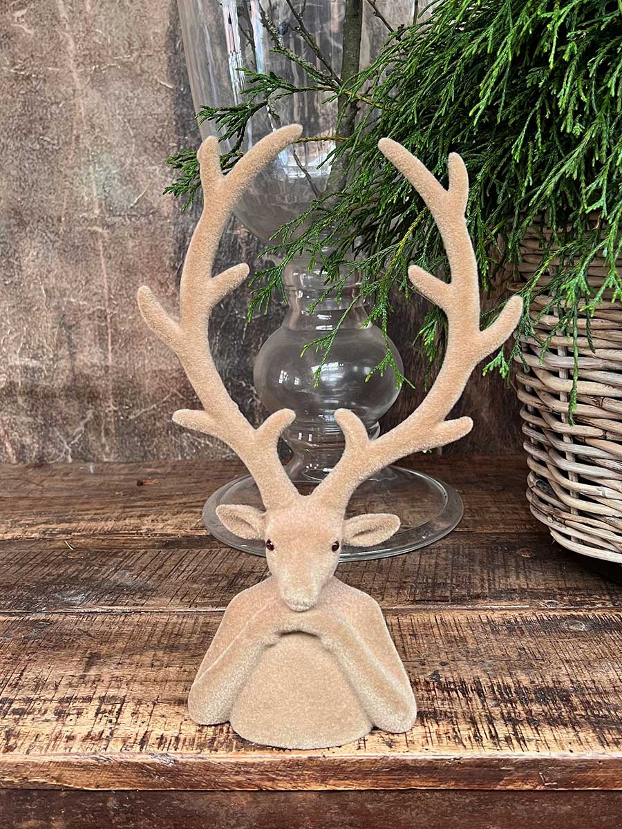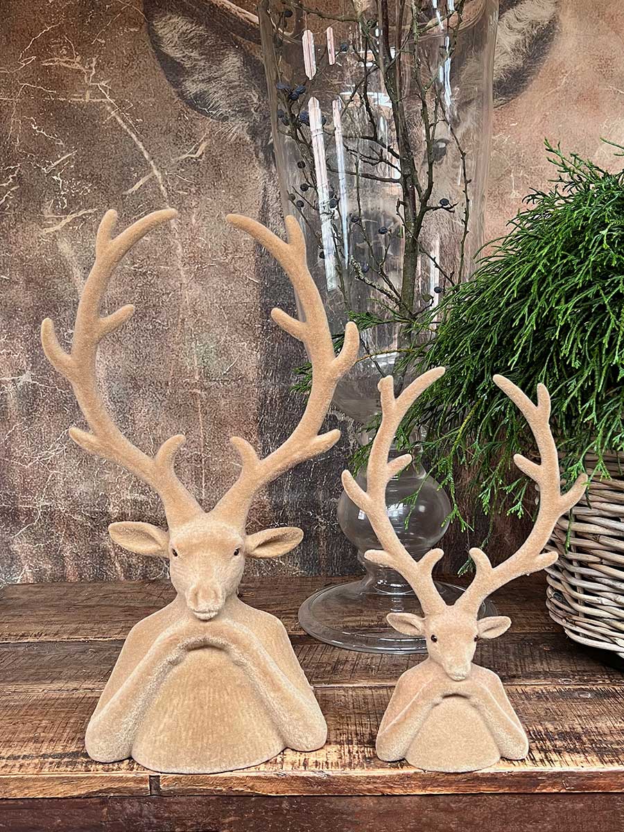 Hirschkopf Tasko Samt beflockt braun H30