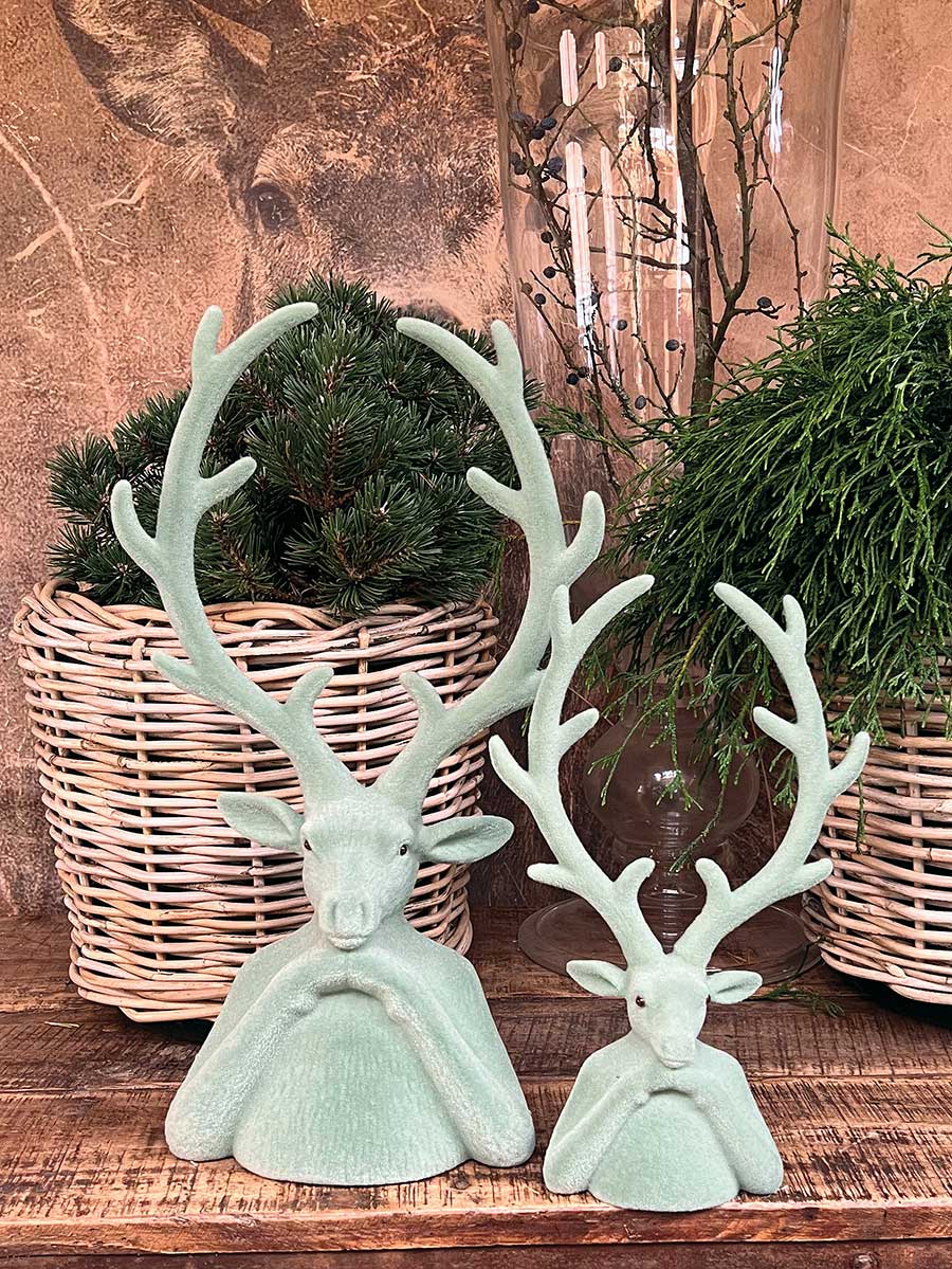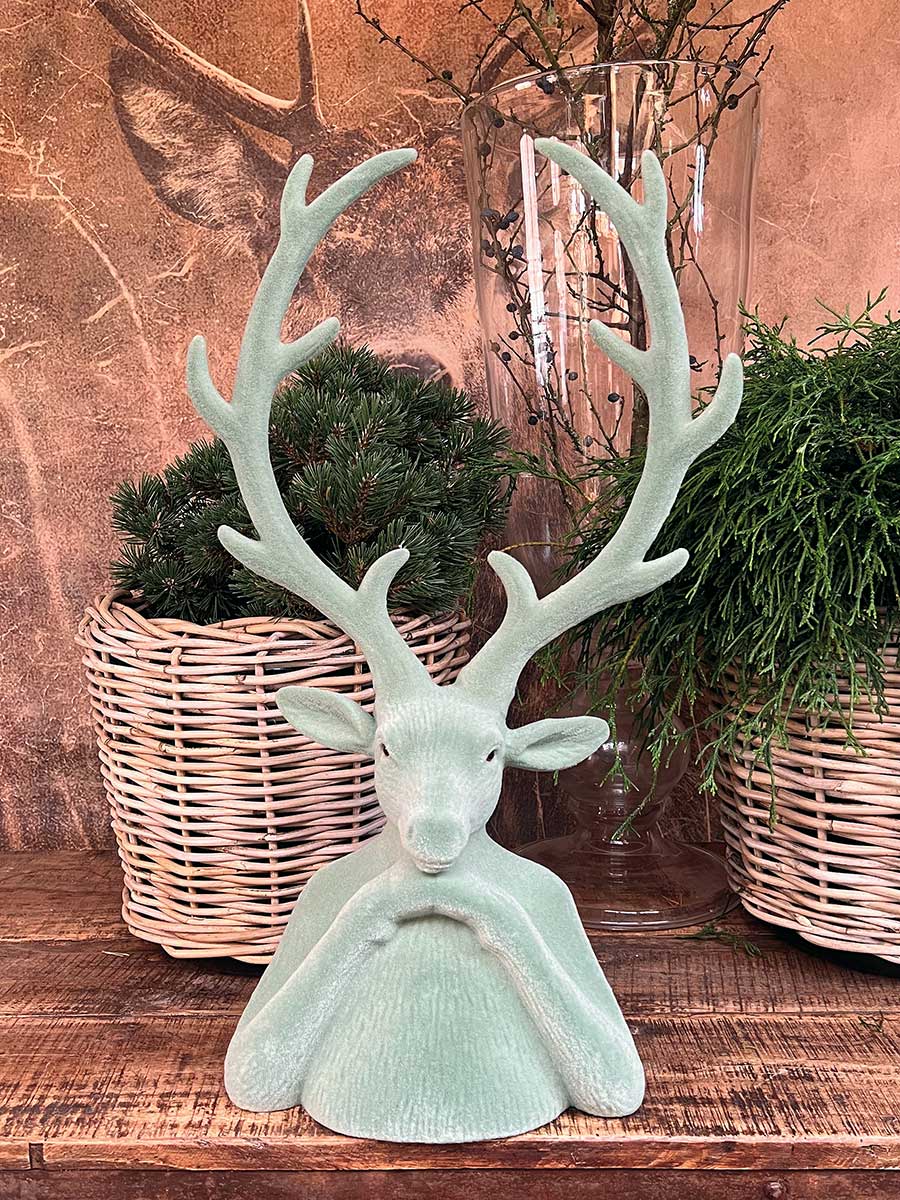 Lieferumfang: 1 Hirschkopf Tasko beflockt salbei H60
