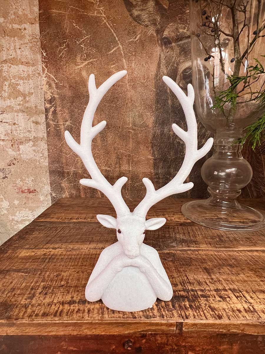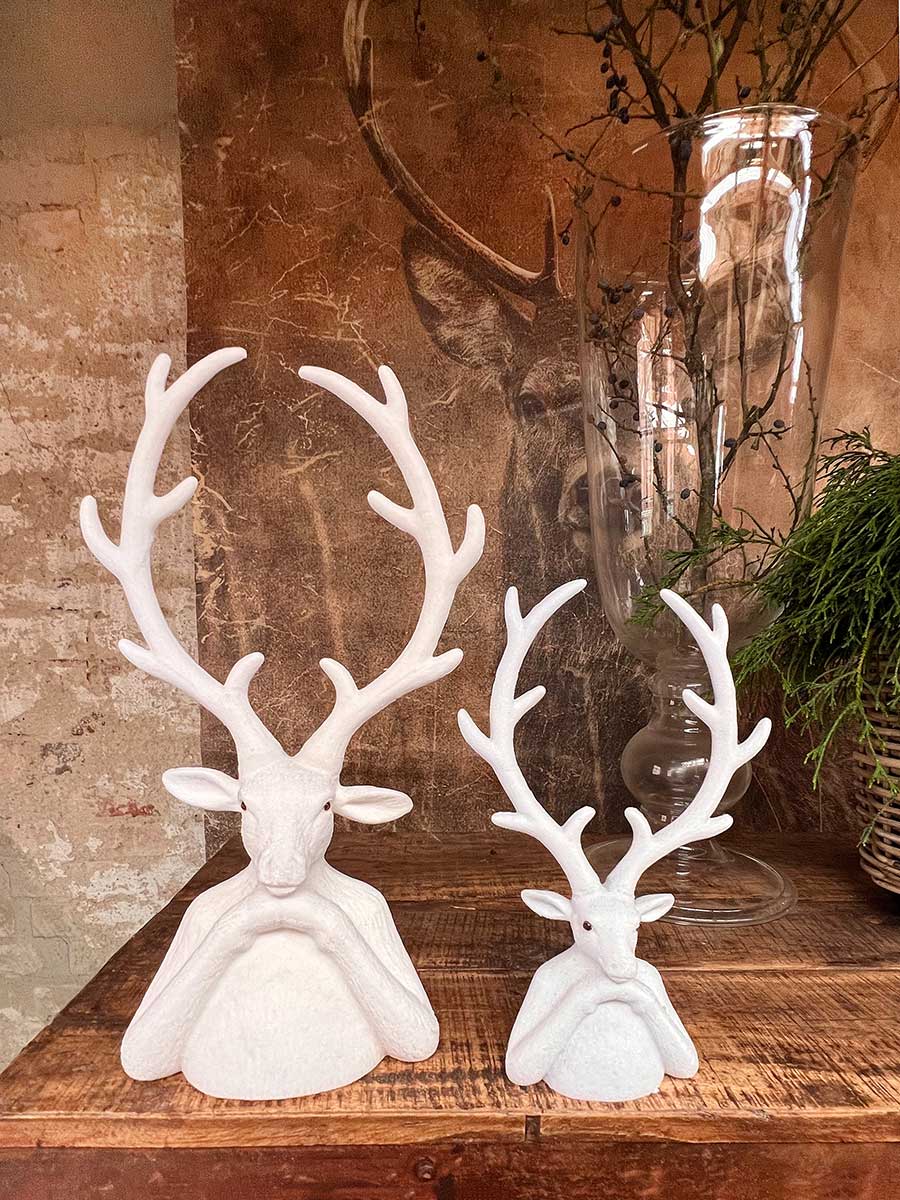 Lieferumfang: 1 Hirschkopf Tasko beflockt weiß H30