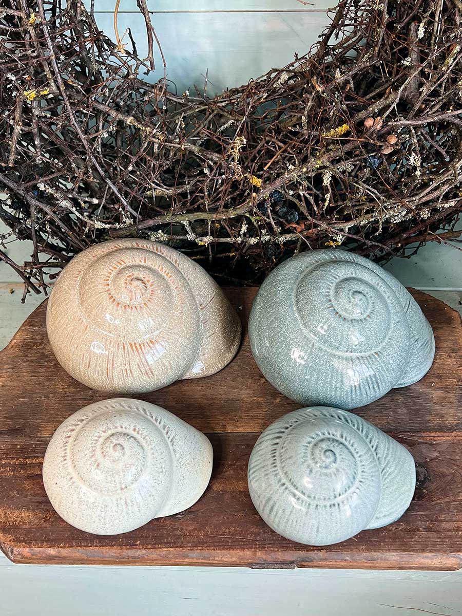 Keramikmuschel Merle von Vosteen. Hübsche Dekoration für florale Arrangements wie Pflanzschalen oder in Grüppchen, innen hohl. Die Glasur bzw. Farbe fällt bei jeder Muschel ein wenig anders aus.