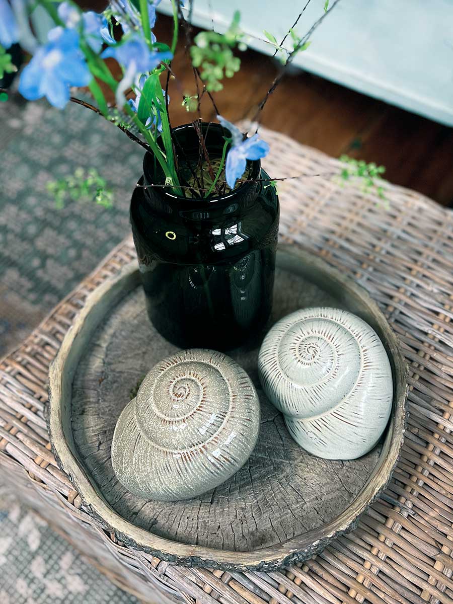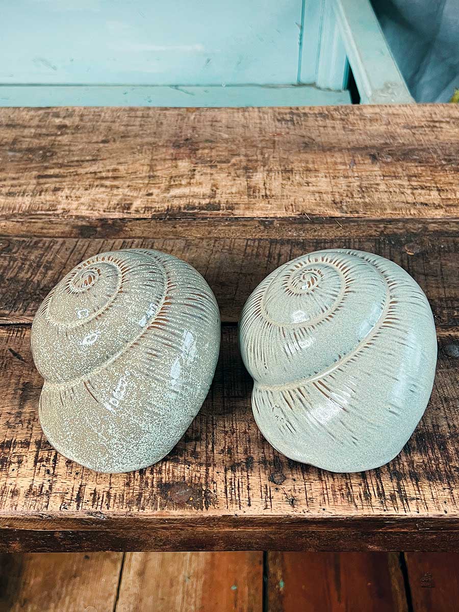 Keramikmuschel Merle von Vosteen. Hübsche Dekoration für florale Arrangements wie Pflanzschalen oder in Grüppchen, innen hohl.