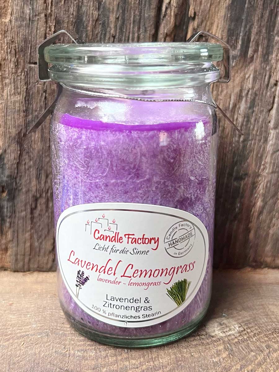 Lieferumfang: 1 Candle Factory Baby-Jumbo Duft-Kerze im Weckglas Lavendel Lemongrass