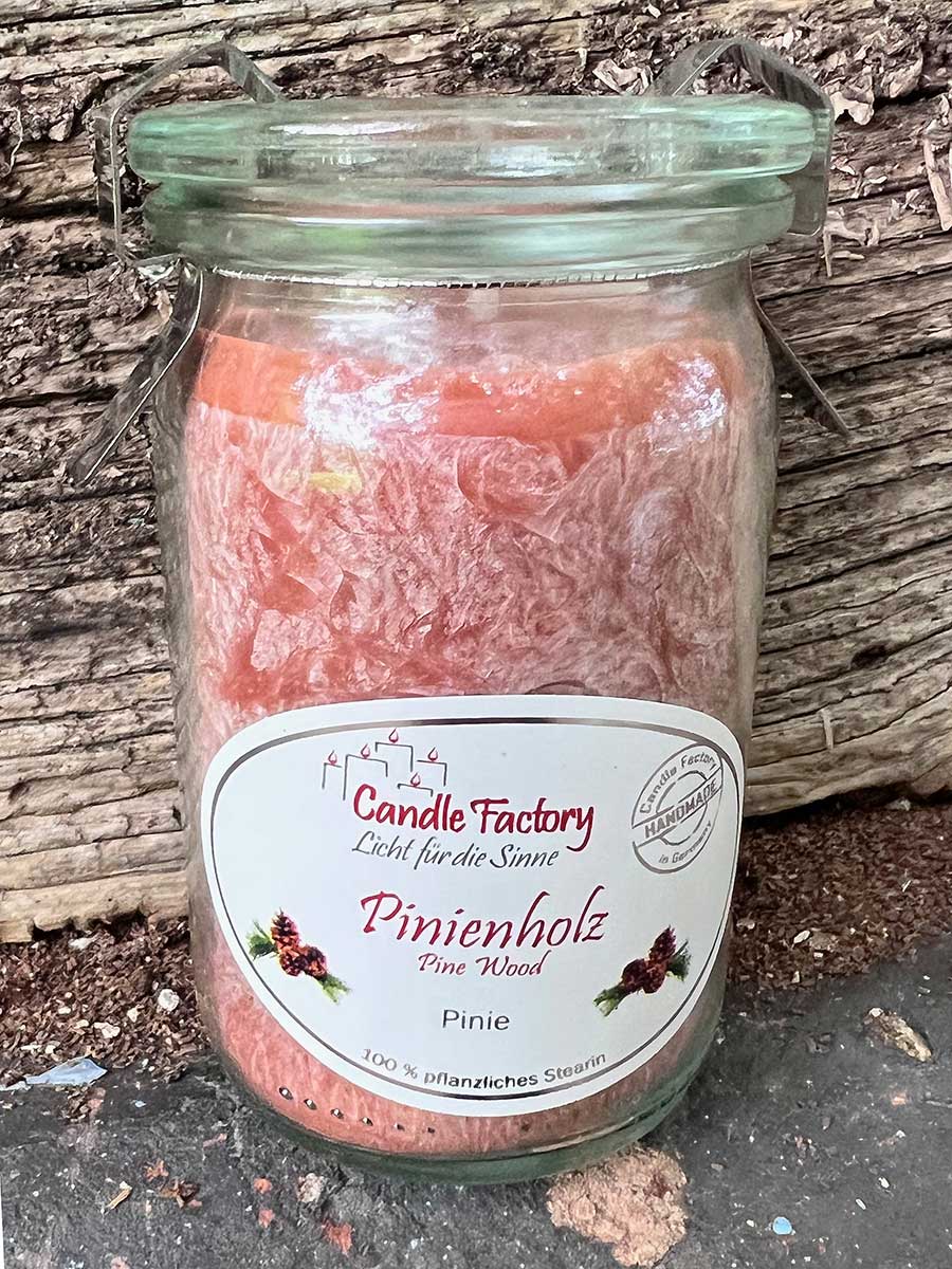 Lieferumfang: 1 Candle Factory Baby-Jumbo Duft-Kerze im Weckglas Pinienholz