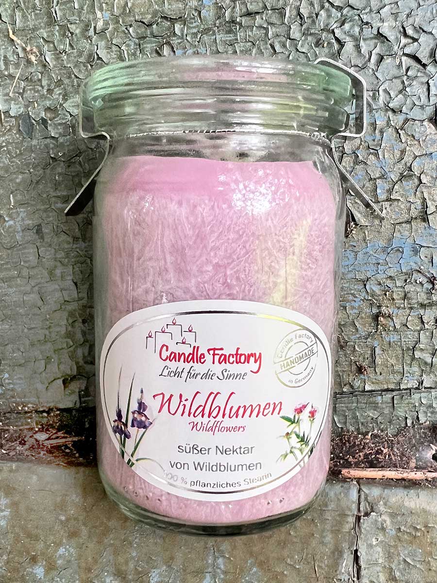 Lieferumfang: 1 Candle Factory Baby-Jumbo Duft-Kerze im Weckglas Wildblumen