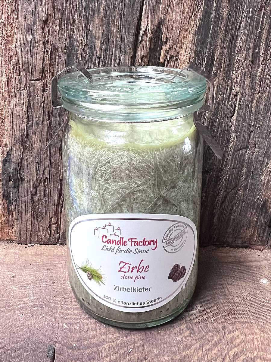 Lieferumfang: 1 Candle Factory Baby-Jumbo Duft-Kerze im Weckglas Zirbe