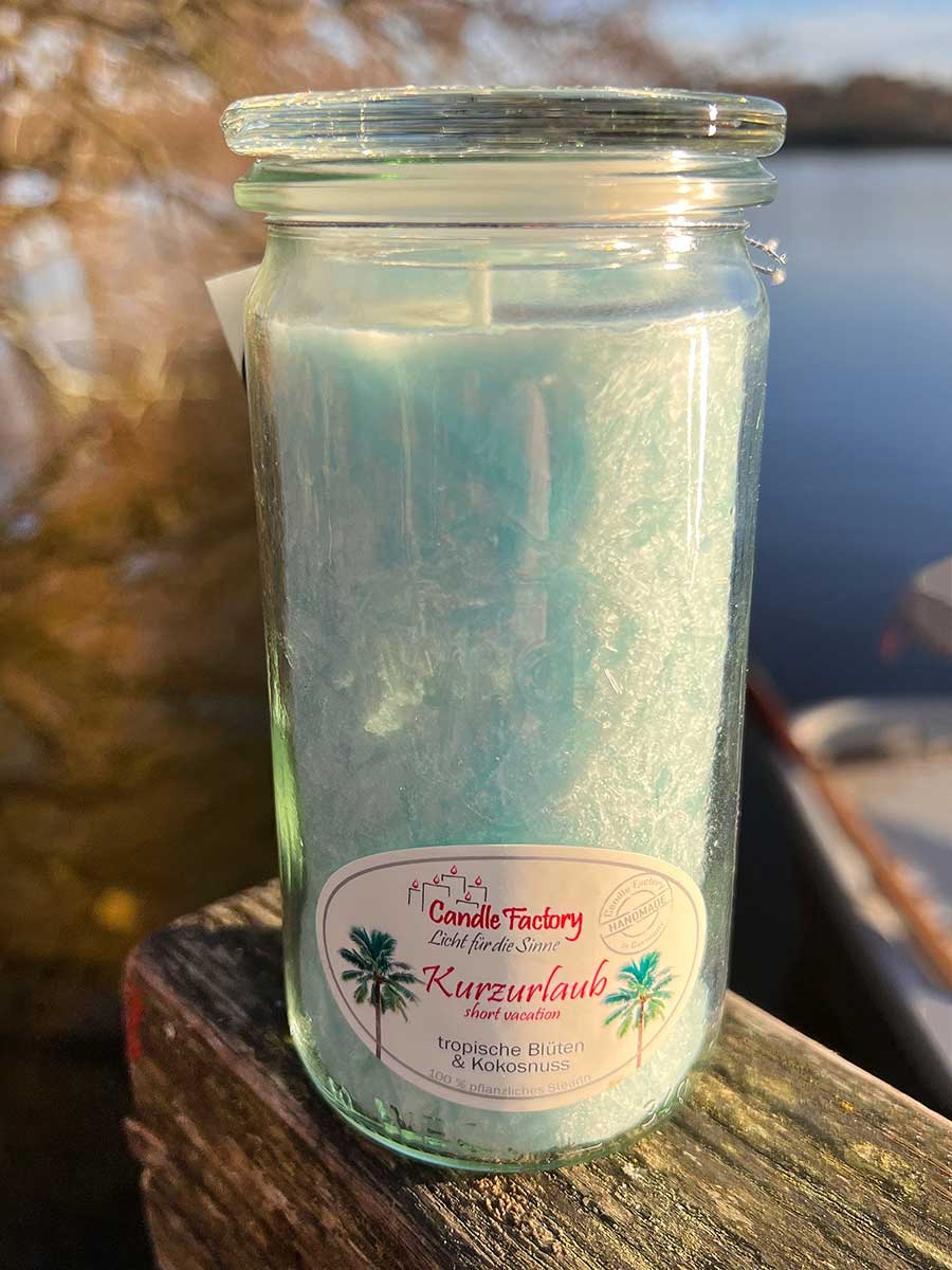 Lieferumfang: 1 Candle Factory Mini-Jumbo Kerze im Weckglas Duft: Kurzurlaub