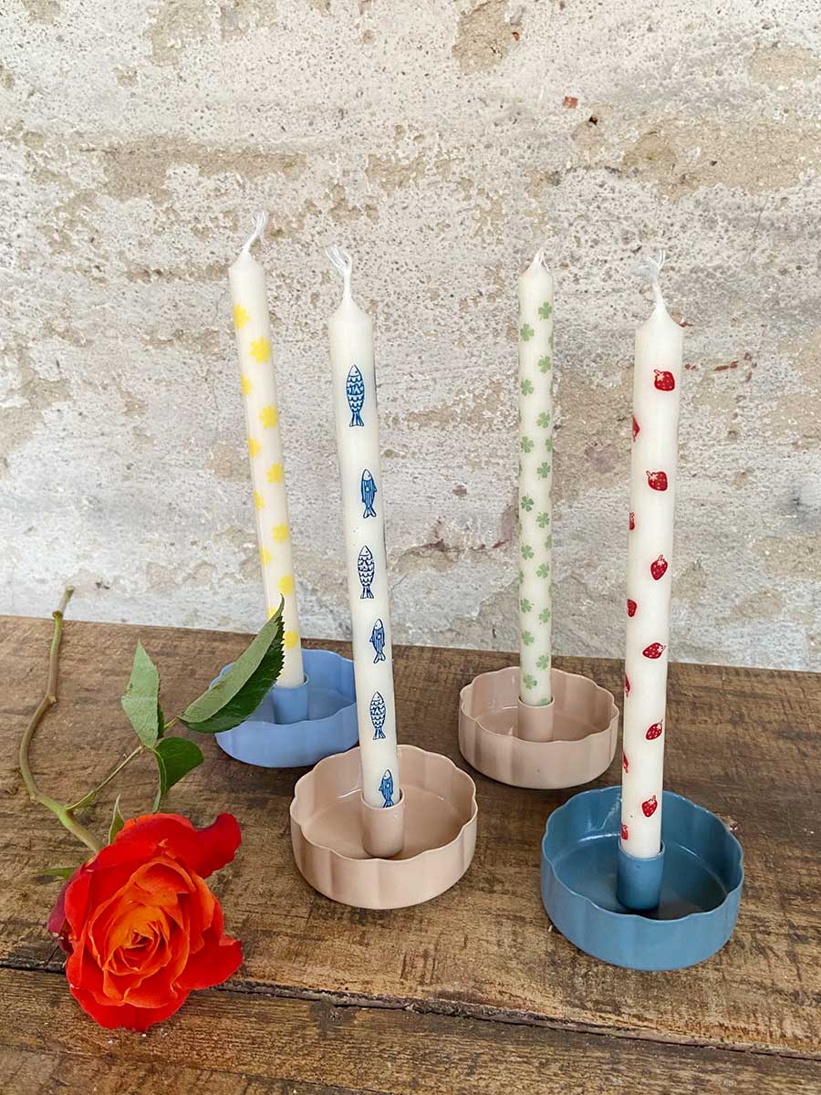 IB Laursen dünne Stabkerze Celia blaue Fische Stearin H20 4er Pack