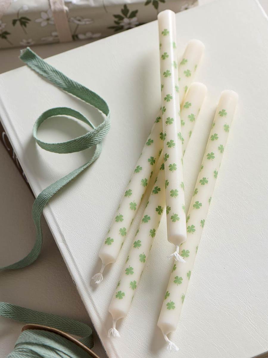 Hübsche schmale 20 cm lange Stabkerze von IB Laursen Motiv: Kleeblatt, im praktischen 4er Pack.