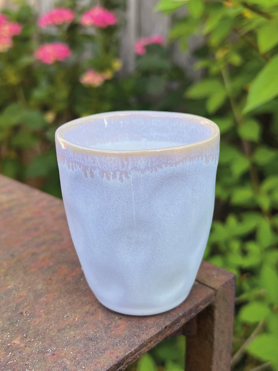 Hübsche Kerze im Steingut-Becher. Nach dem Abbrennen der Kerzen habt Ihr einen tollen Becher mit 280 ml Fassungsvermögen.
