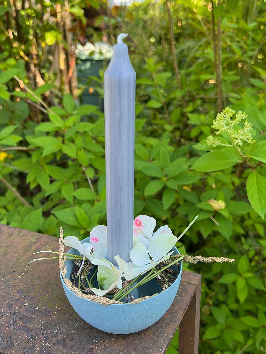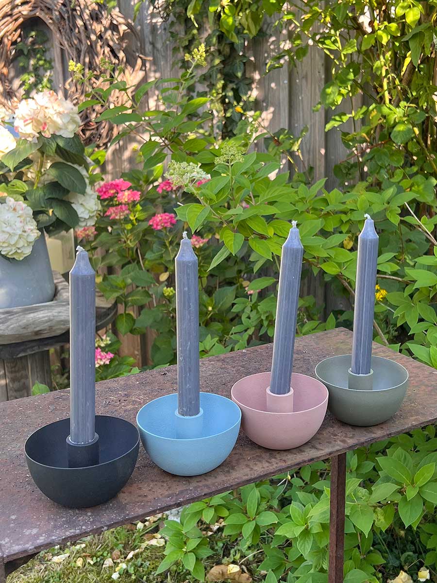 IB Laursen Kerzenhalter schüsselförmig rund blau für Stabkerzen