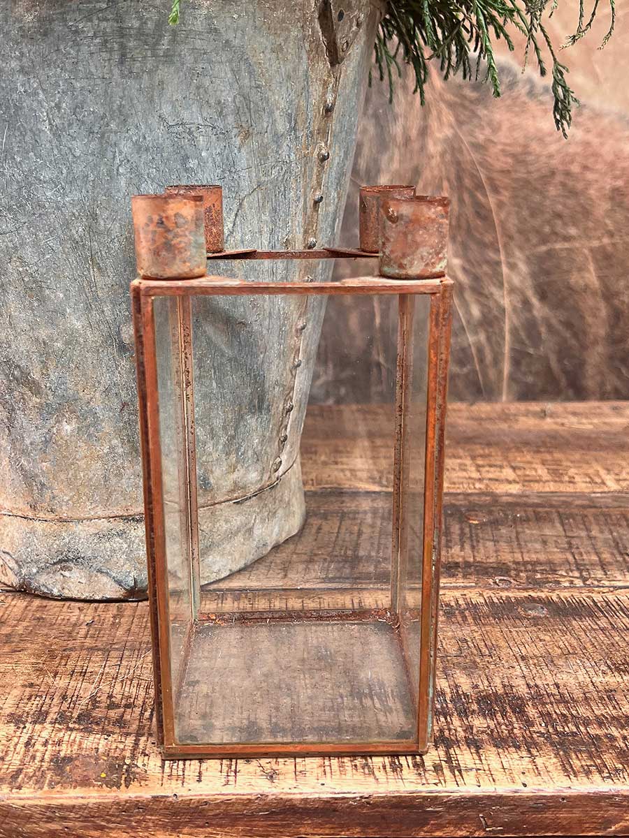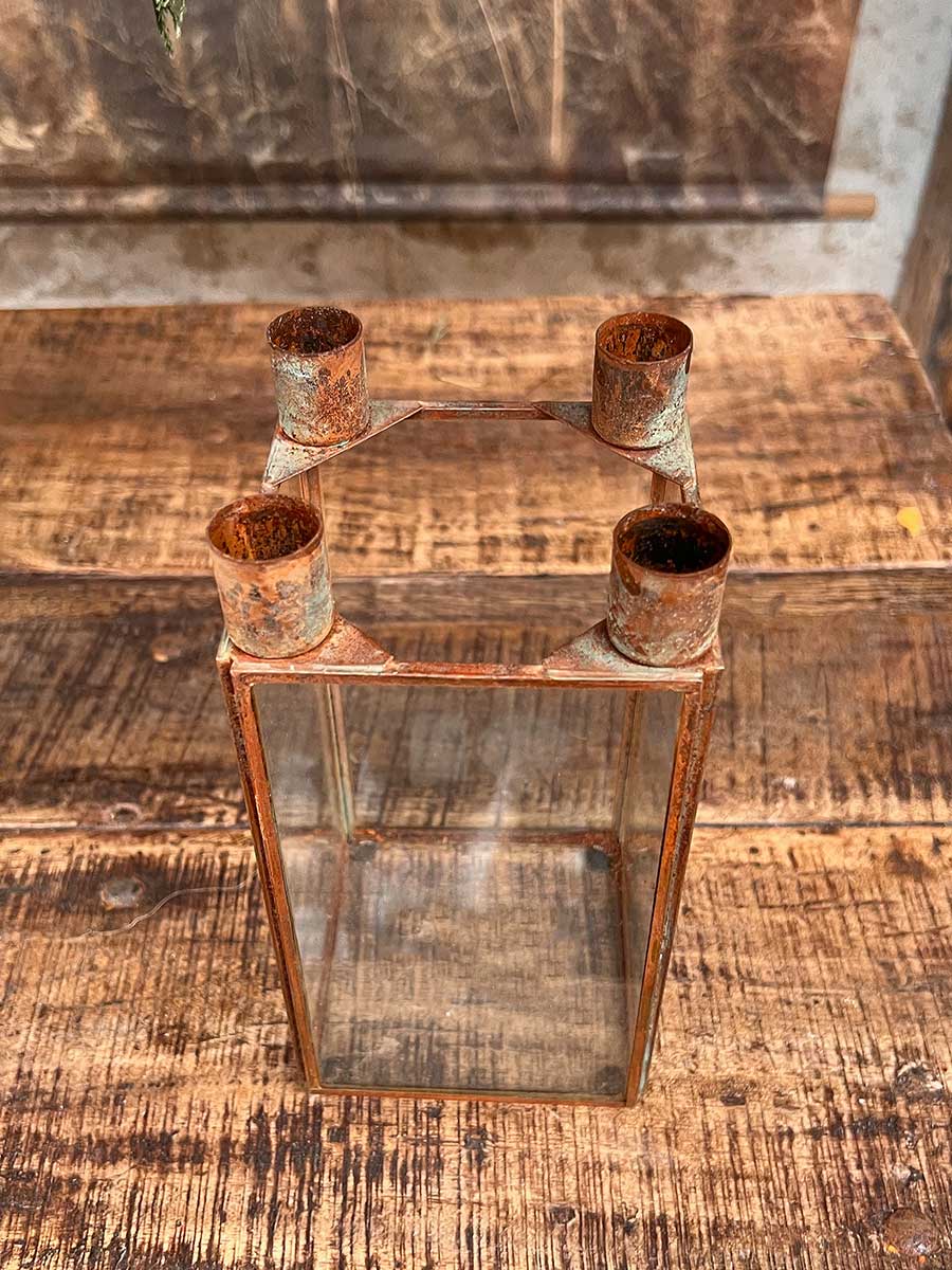 Metall 4er Kerzenhalter Laterne Curie antikbraun H21