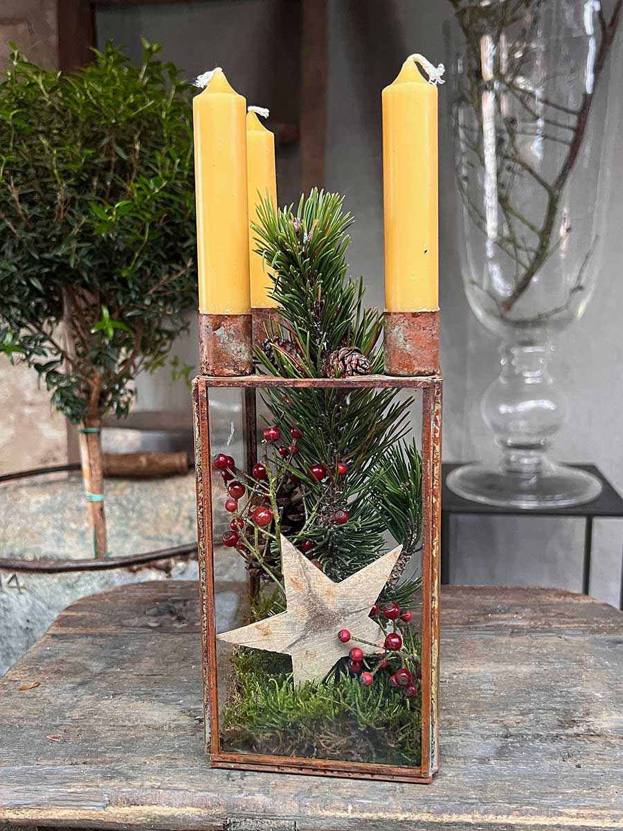 Lieferumfang: 1 Metall 4er Kerzenhalter Laterne Curie antikbraun H21 von Vosteen