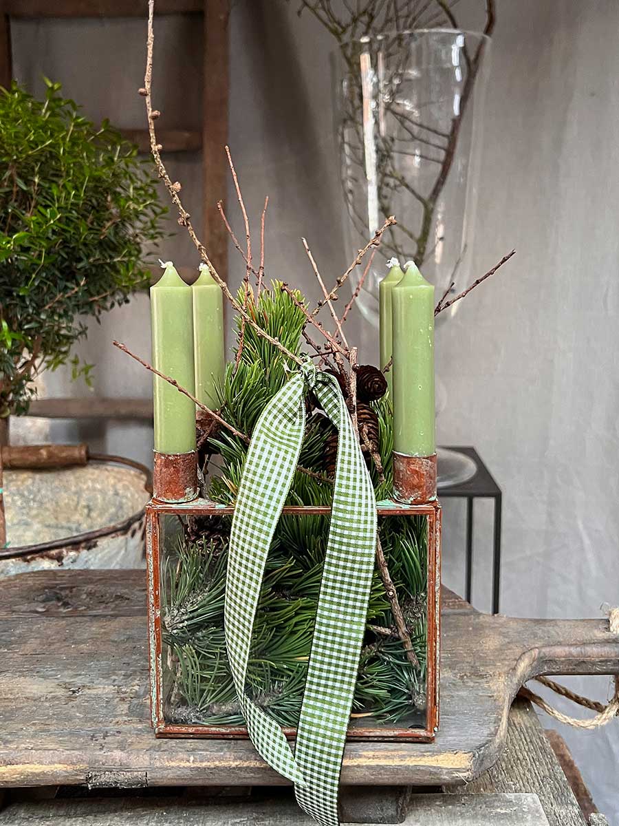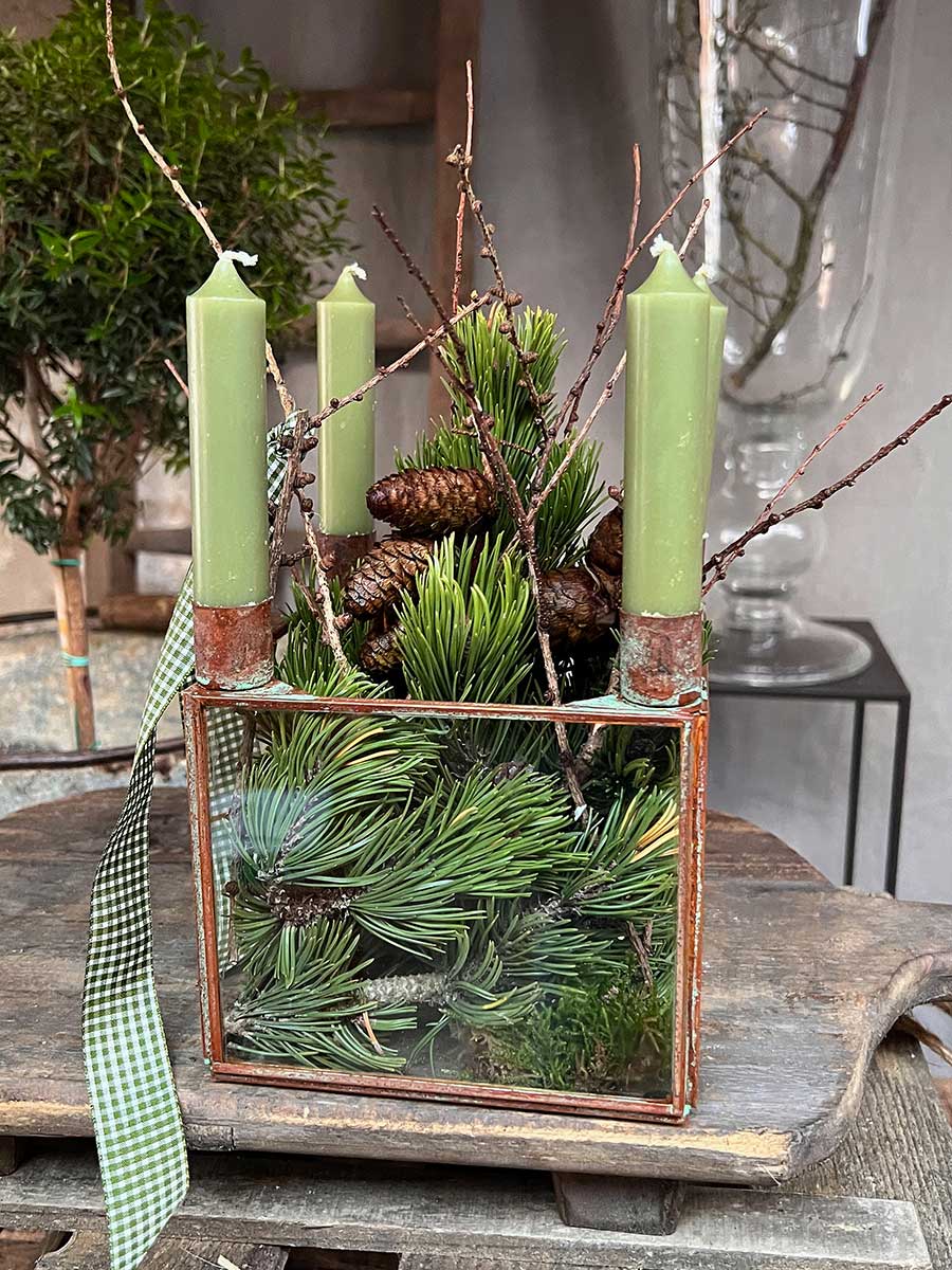 Lieferumfang: 1 Metall 4er Kerzenhalter Laterne Curie antikbraun quadratisch H16 von Vosteen