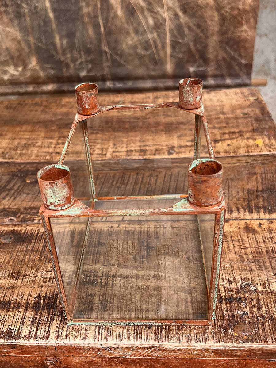Metall 4er Kerzenhalter Laterne Curie antikbraun rechteckig H16