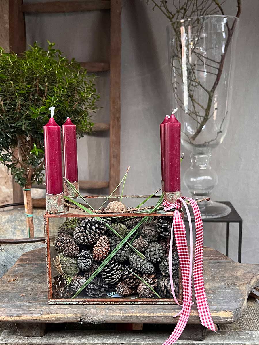 Lieferumfang: 1 Metall 4er Kerzenhalter Laterne Curie antikbraun rechteckig H16 von Vosteen