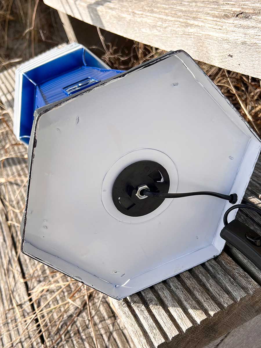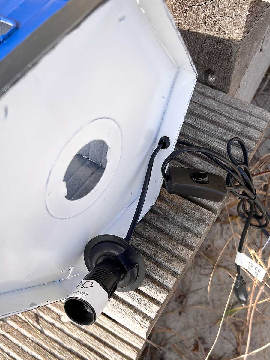 Lieferumfang: 1 Batela Metall Leuchtturm Lampe blau weiß mit Kabel H58