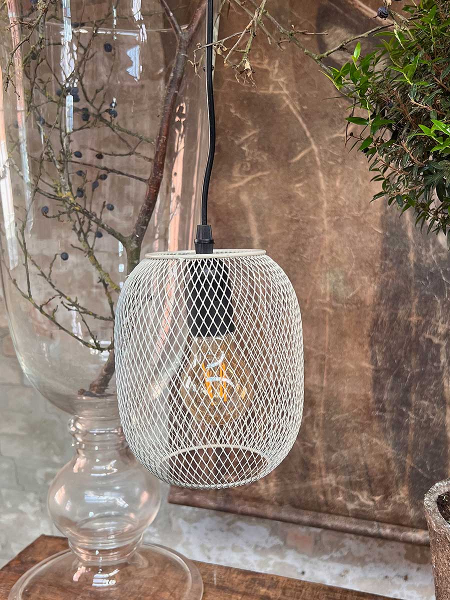 LED Hängelampe Grid Metallgeflecht bauchig sand H18 batteriebetrieben