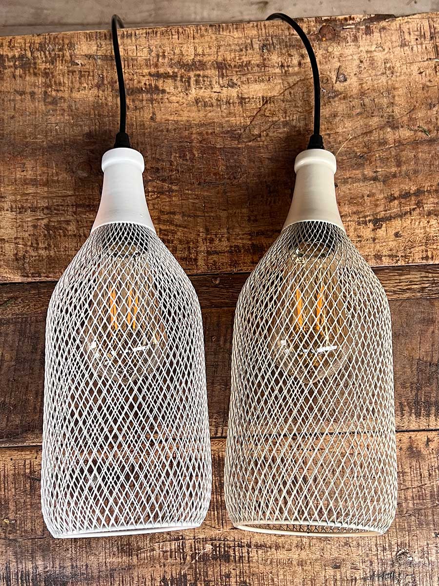 Lieferumfang: 1 LED Hängelampe Grid Metallgeflecht schlank sand H31 batteriebetrieben