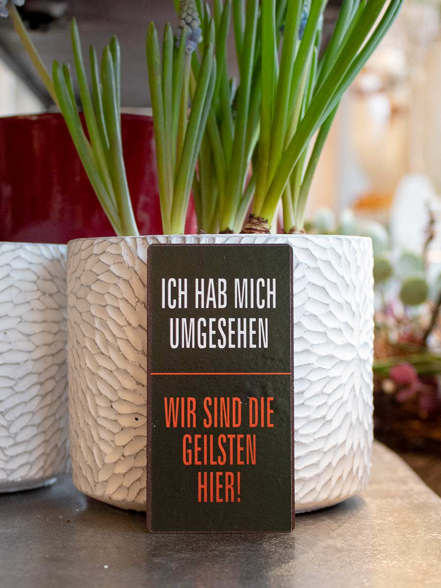 Kleines Magnetschild „Ich hab mich umgesehen. Wir sind die geilsten hier!". Tolles kleines Mitbringsel auch als Ergänzung zu einem unserer Blumengrüße.