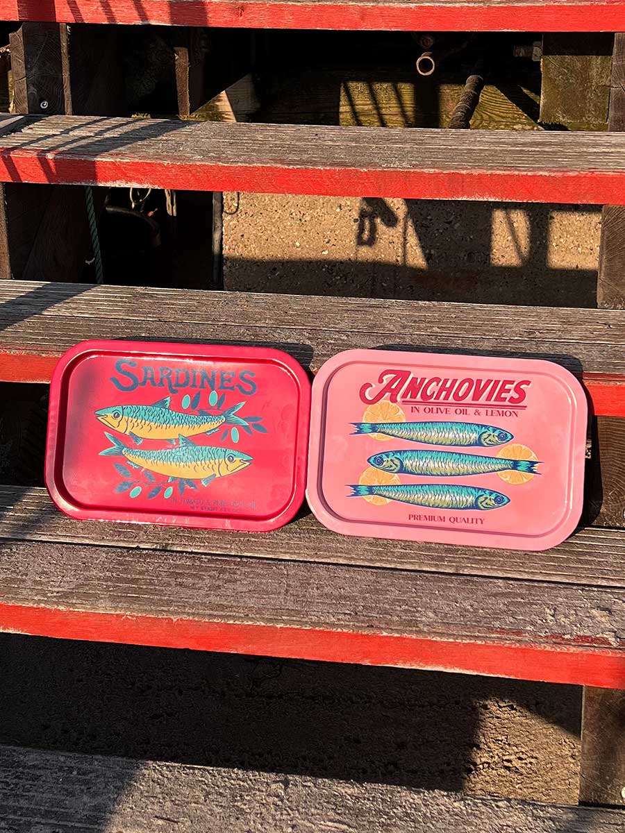 Farbenfrohes rosa Metalltablett Motiv: Anchovies - stimmungsvolle maritime Dekoration, die in allen Wohnbereichen zum Einsatz kommt, ob Wohnzimmer, Badezimmer, Eingangsbereich oder Wintergarten. Holen Sie sich nordisch maritimes Wohnflair in Ihr Zuhause oder setzen Sie maritime Akzente in der Ferienwohnung.